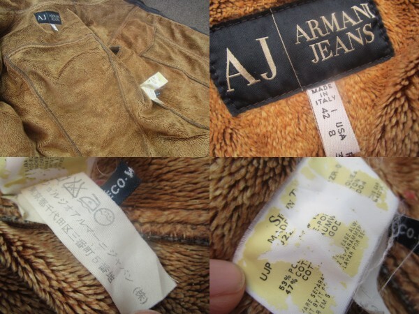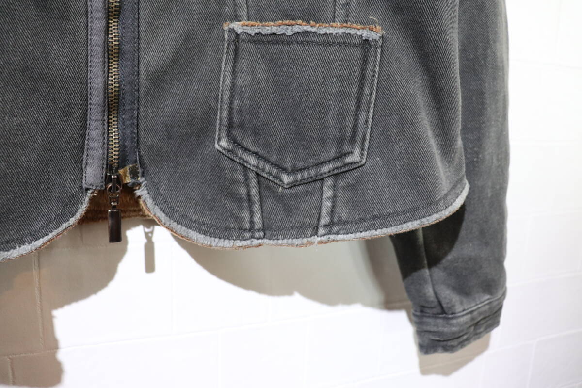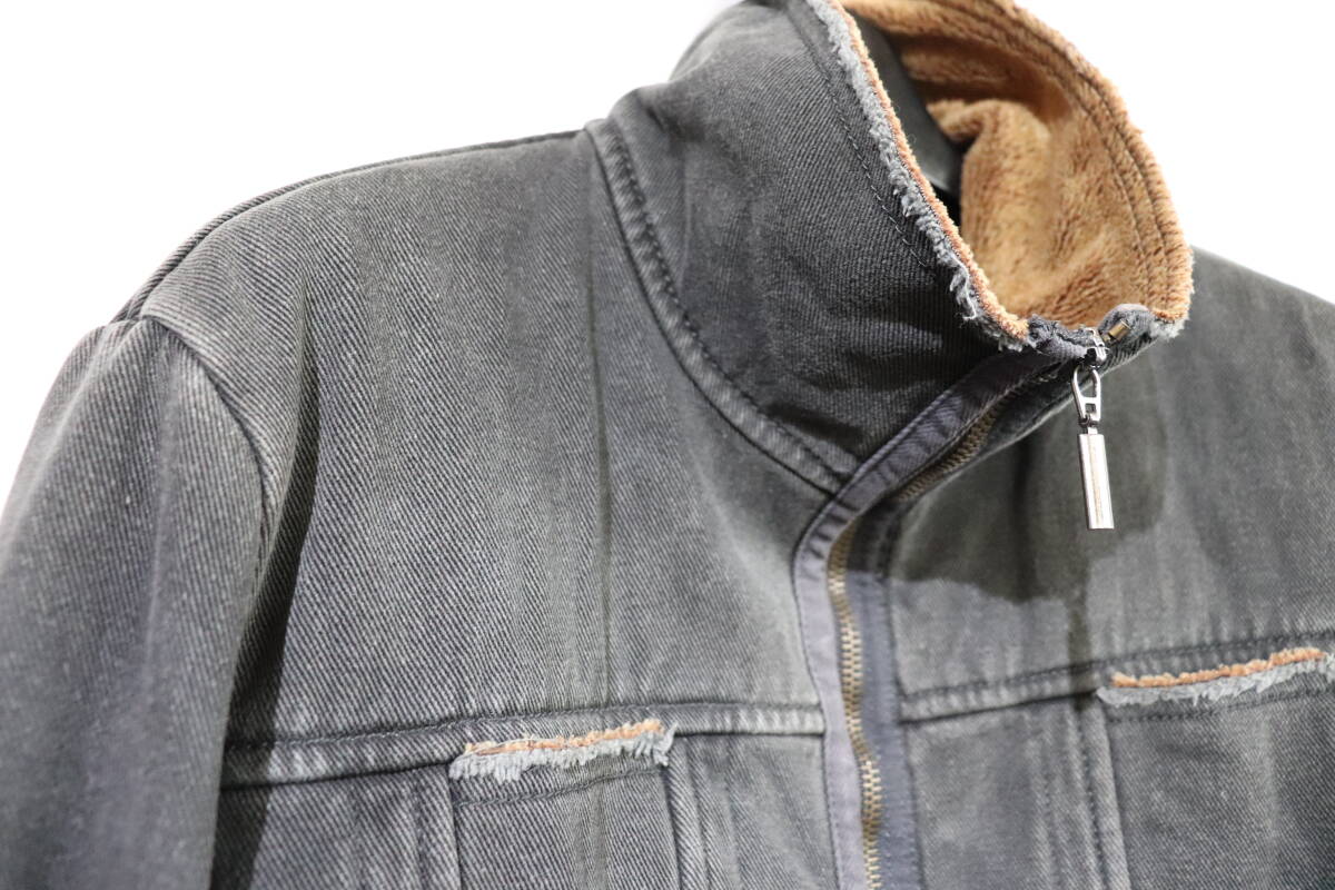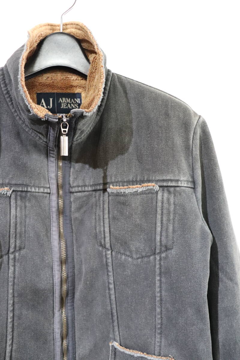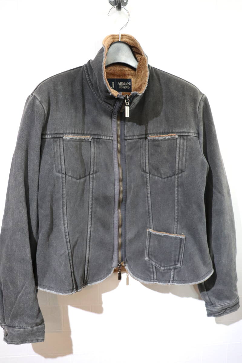 『名作    ARMANI JEANS    イタリア製    vintage加工入り    ボアデニムジャケット    42    色褪せたブラック系』