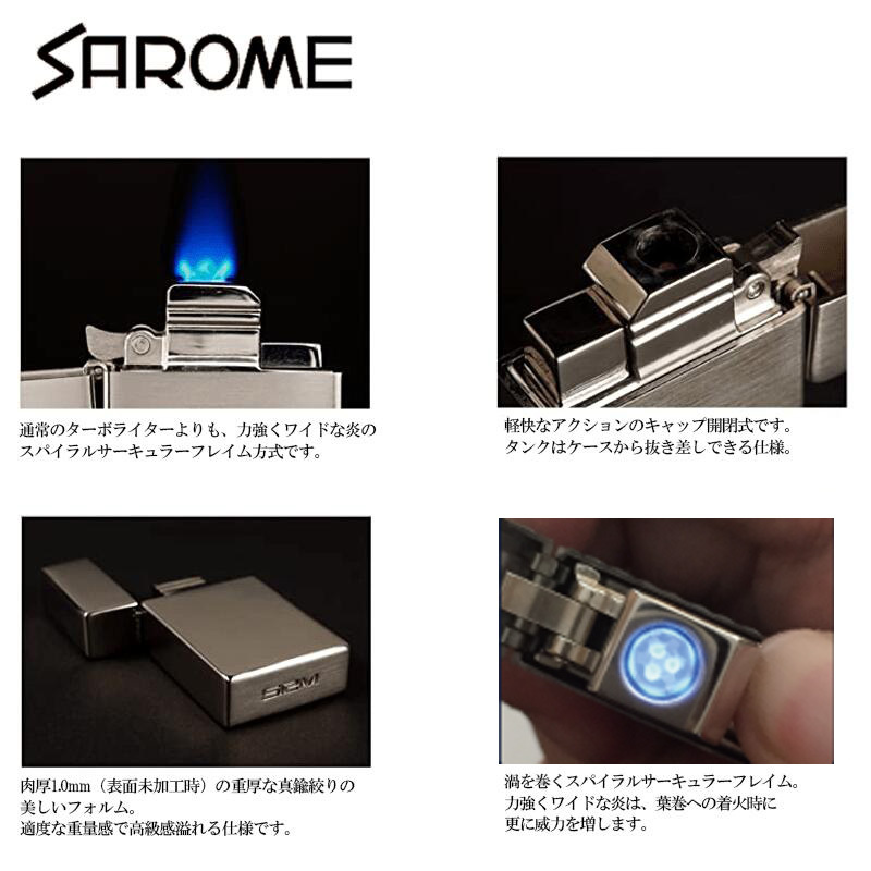 商品説明 | 【SAROME スパイラルサーキュラーフレイムNEO 手彫り唐草】 SAROMEライターはサロメ社がデザインした人気の高いガスライターです。 風に強く、室外で使用した際に風で火が消えてしまう、といったストレスが軽減されます。 両面に施された繊細なアラベスク彫刻は大変美しく高級感溢れる逸品に仕上がっています。 彫刻機では出せない緻密さと高級感が手彫りならではの特徴。 ボディは厚みがあり、手にした瞬間にわかる重厚感が魅力的な逸品です。 製造元であるサロメ社は現在はライター製造を中止しており、絶版品となっております。 付属しているアクリルケースは観賞用、保管用などに最適です。 定価19,800円(税込み)→7,920円(税込み) SRMの基盤となる精巧でハードなボディは高度な技と入念な作業工程を繰り返すことにより製造された板厚1mmOVERの真鍮絞り加工。 心臓部は世界で初めて風に消えない触媒式ジェットフレームライターの開発に成功し、ガスライターのトップブランドを走り続けた「SAROME」の特許燃焼機構青漲炎スパイラルサーキュラーフレイムを内蔵しており、タバコはもちろん、葉巻にも最適です。 【訳あり特価品のご注意】 サロメ社は2022年12月をもってライターの取り扱い、修理受付を終了しており、修理保証はございません。 現在、製造は行っていないため、メーカー倉庫保管品となり、廃盤商品、絶版となります。 訳あり品ですので、商品到着後、1週間以内にご連絡を頂けた場合のみ初期不良交換対応が可能でございます。 修理保証が付属していないため、訳あり特価品とさせていただきます。 修理の際はお客様自身でガスライター修理を行っているお店をお探し頂きますようお願い申し上げます。 ご了承のほど宜しくお願い致します。 |