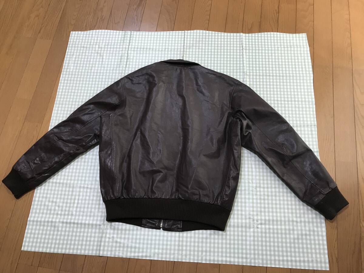 裏側1枚革のダークブラウンの革ジャンです、サイズ表記  LLです、 着丈約 63 cm  身幅約 62cm  肩幅約 51 ㎝ 袖丈約 60 ㎝ です、必ず実寸をご参考にしてください、内側毛玉あります他、目立ったダメージはありませんが、古着ですので古着にご理解ある方のみ、ご入札下さい、ノークレーム ノーリターンでお願いします。
