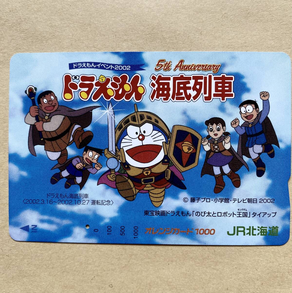 【使用済】 オレンジカード JR北海道 ドラえもん 海底列車 5周年記念 東宝映画ドラえもん「のび太とロボット王国」タイアップ