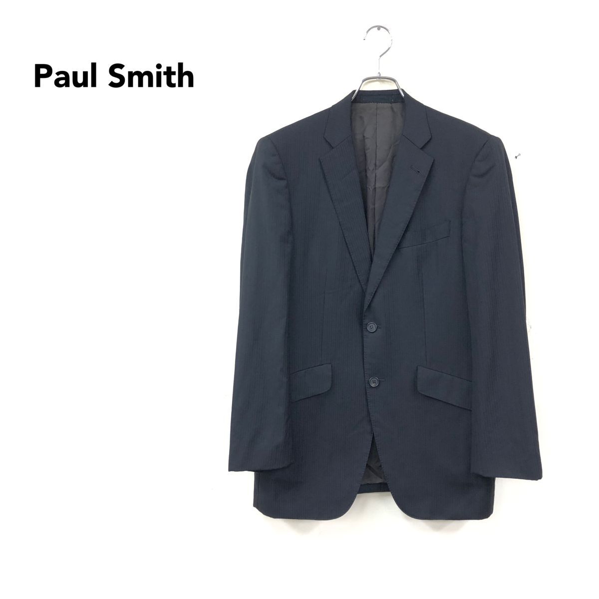 2K1630-J-S◆日本製 Paul Smith ポールスミス テーラードジャケット◆ストライプ ブラック サイズ94-80-175 L メンズ 紳士 上着 毛 ウール