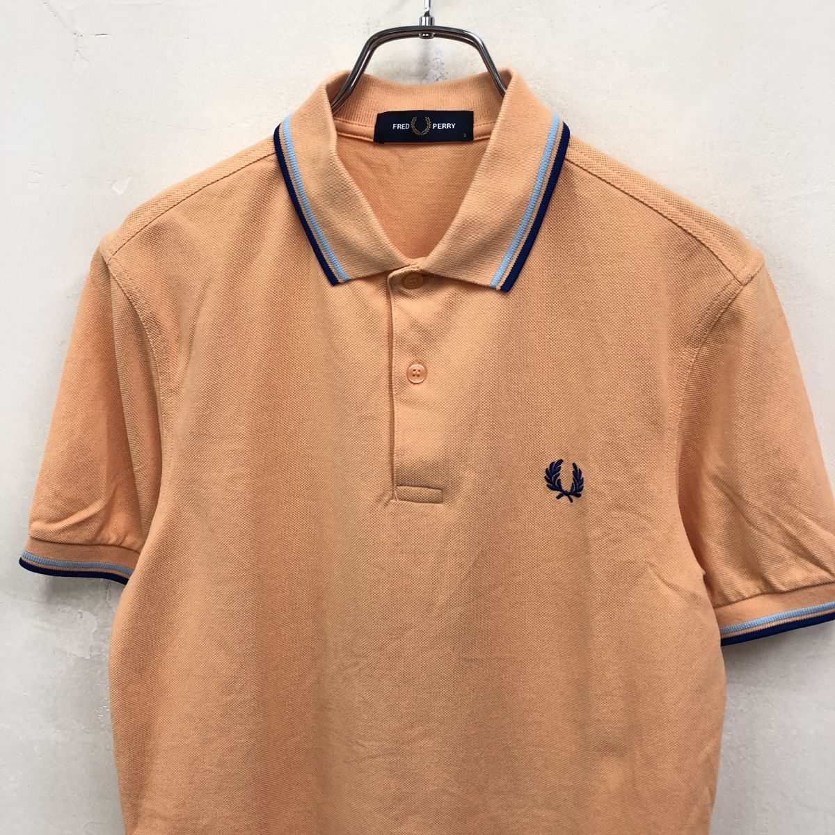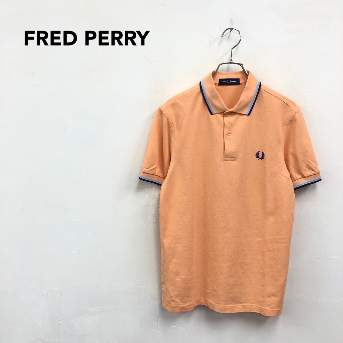 2K1847-K◆良品 FRED PERRY フレッドペリー 半袖ポロシャツ◆sizeS オレンジ ライン入り 綿100% カジュアル プルオーバー メンズ