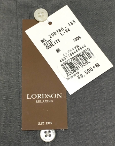 LORDSON RELAXING 長袖カッタウェイ 綿100% L ロードソン 山喜 定価10.450円