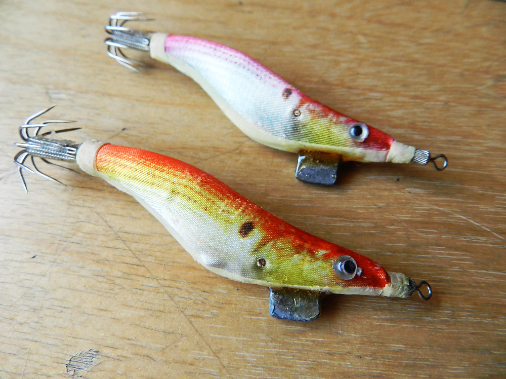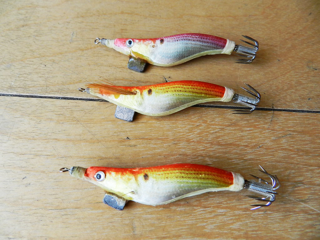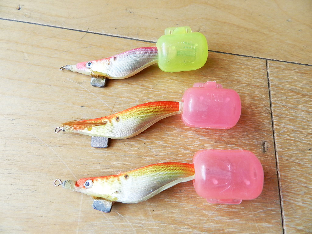 1番上と一番下のエギは、オモリの付け根がエポキシで固めてあります。