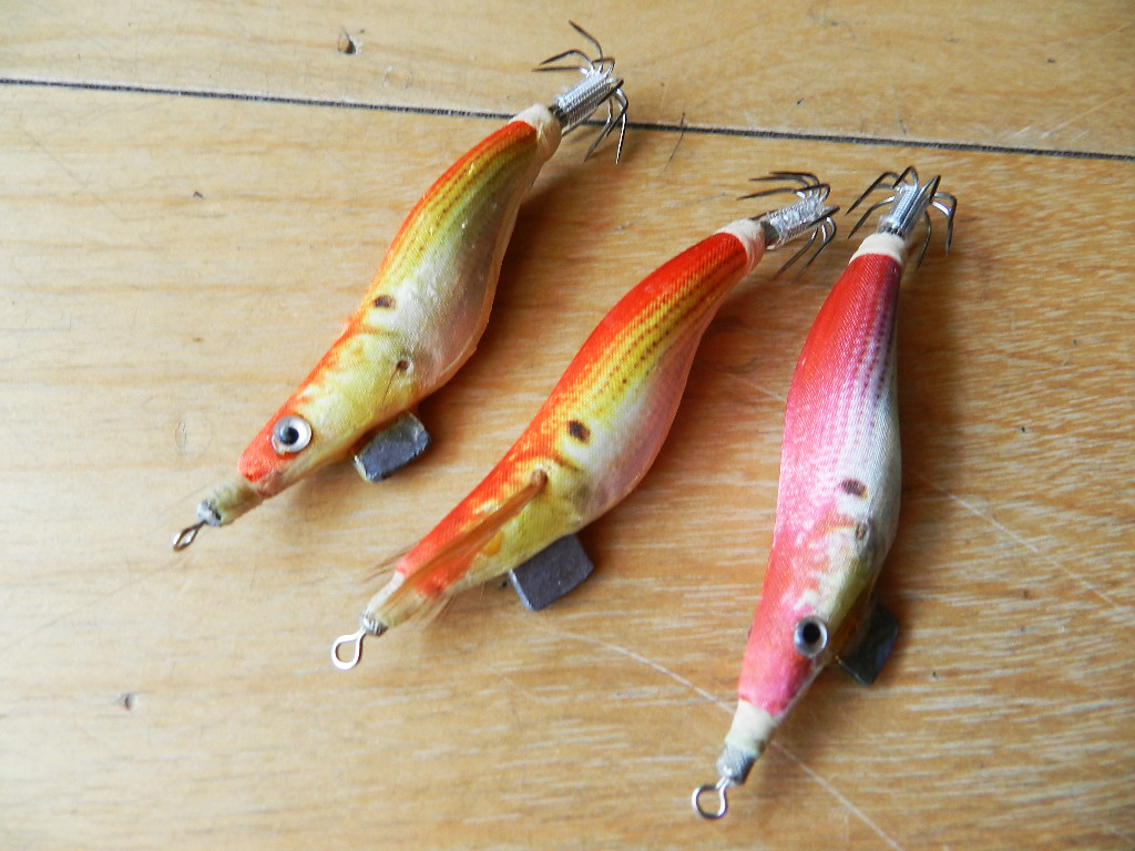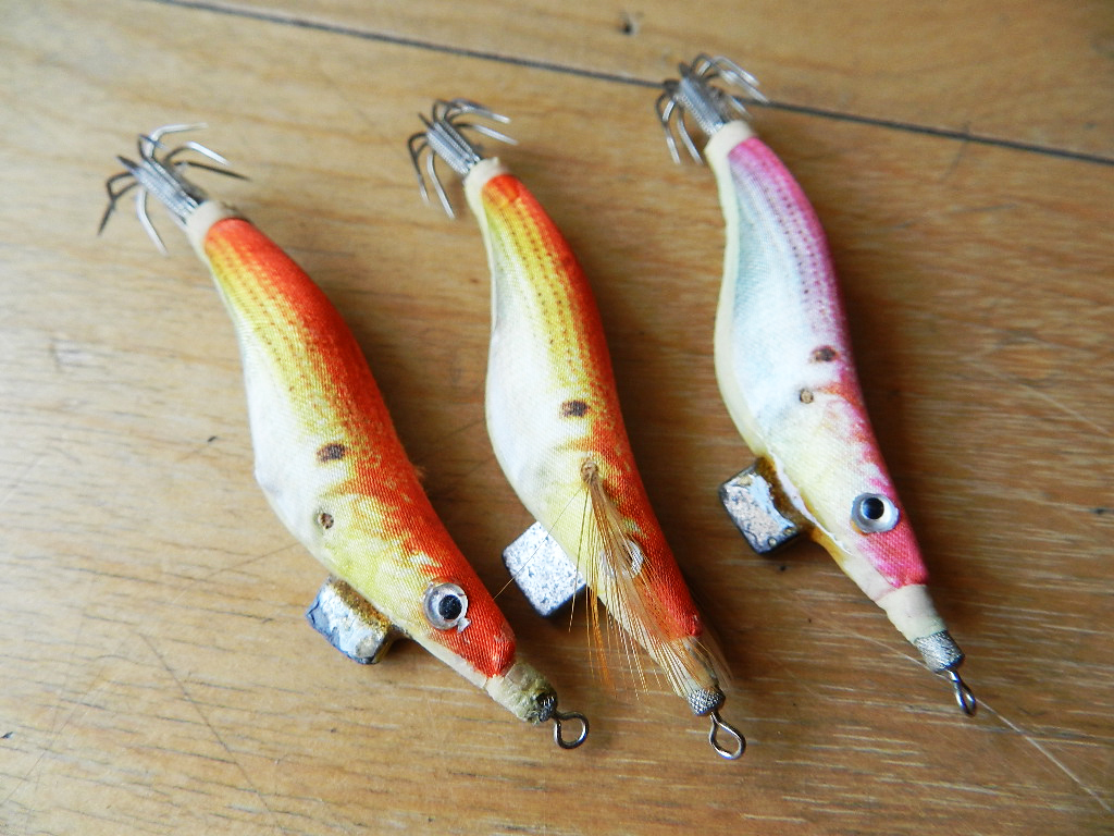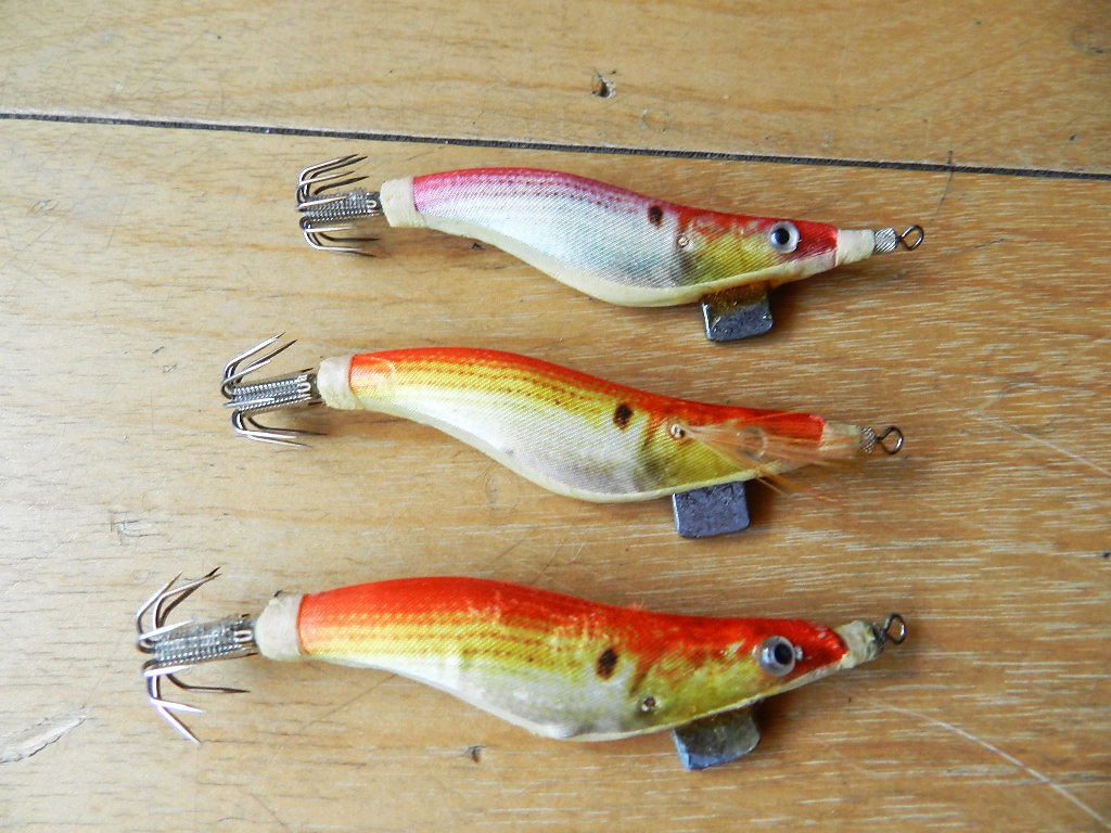 真ん中のエギは左目がありません。