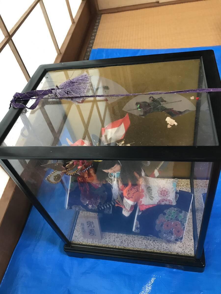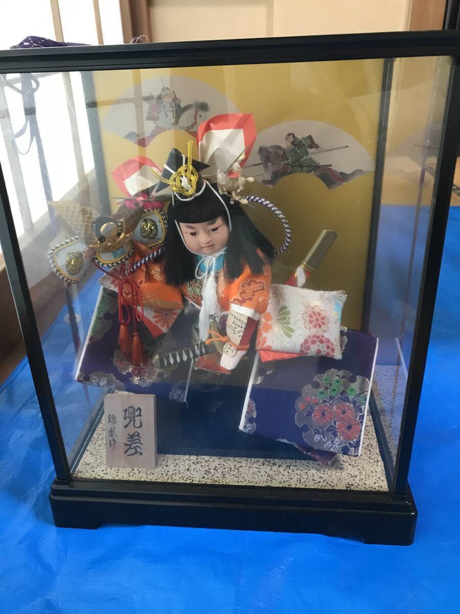 日本人形 兜差 錦凰作 五月人形 こどもの日 コレクション ガラスケース付 置物 飾り 和風 インテリア 昭和レトロ H38×31×23cm