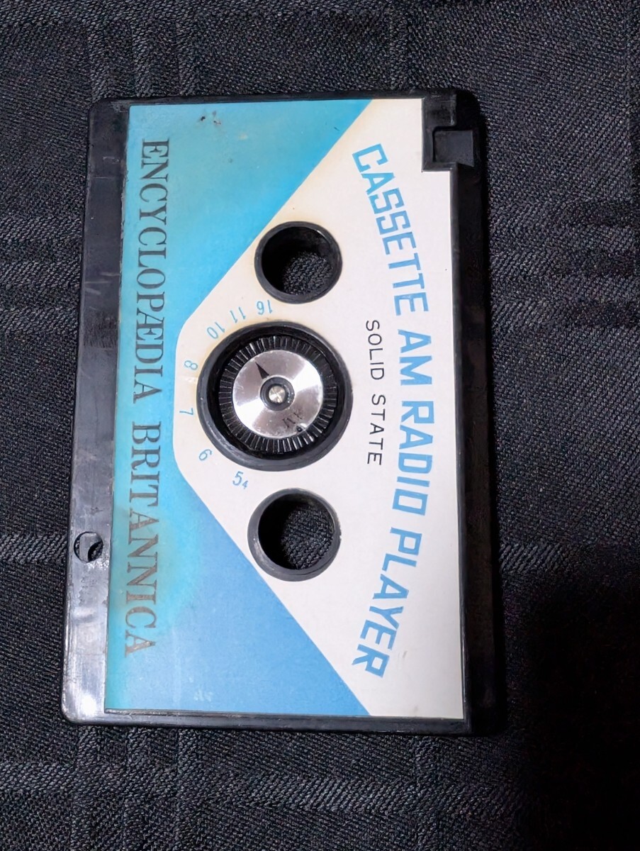 文字だけみると、カセットテーププレーヤーでAMラジオを聴く物、のようですが詳細不明です。