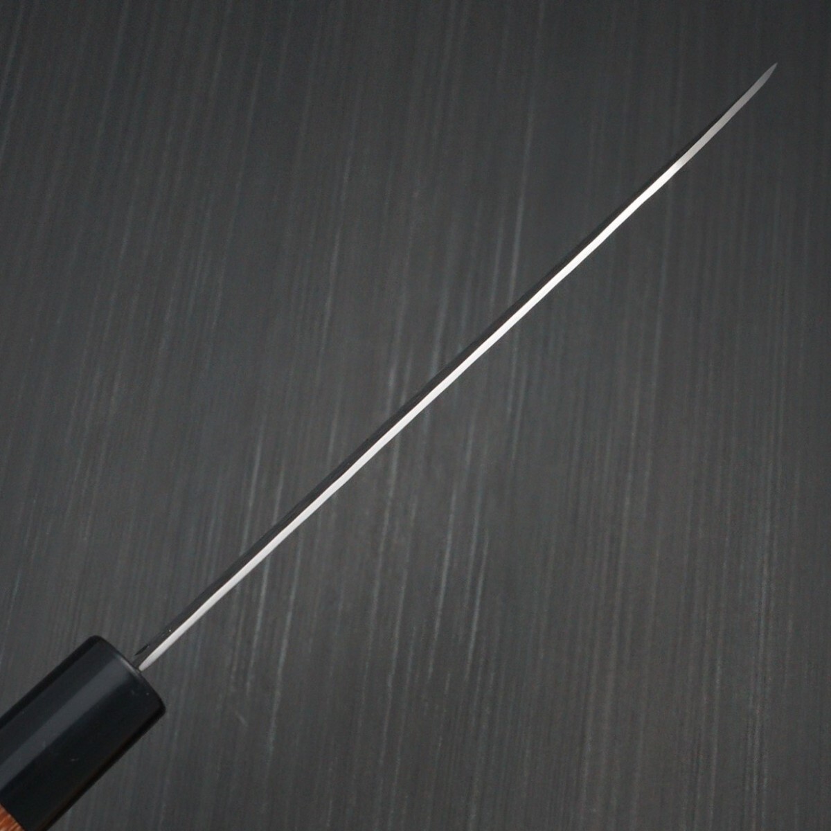 心材の刃はステンレス製のモリブデンバナジウム鋼で、モリブデンやバナジウムの添加されていないステンレスよりもさらに切れ味の持続性と鋭さが優れています。ステンレスのため、鋼のように錆びを気にする必要がありません。
