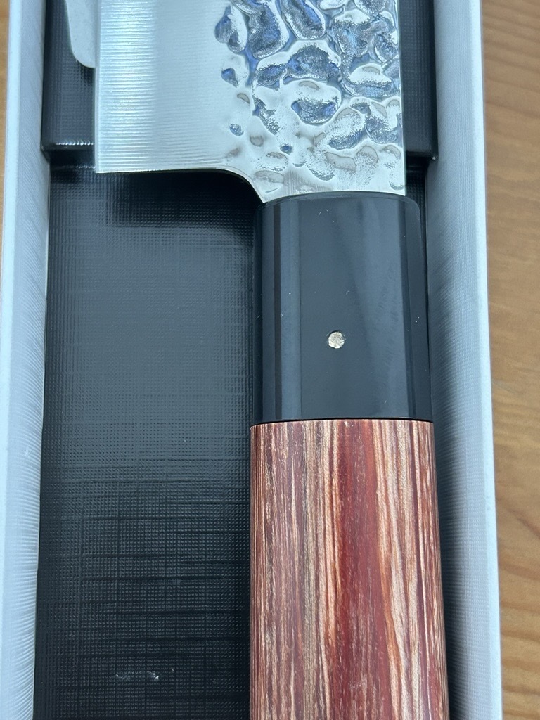 槌目模様は高級感を漂わせているだけでなく、切った食材の切り離れが良い役割も果たします。