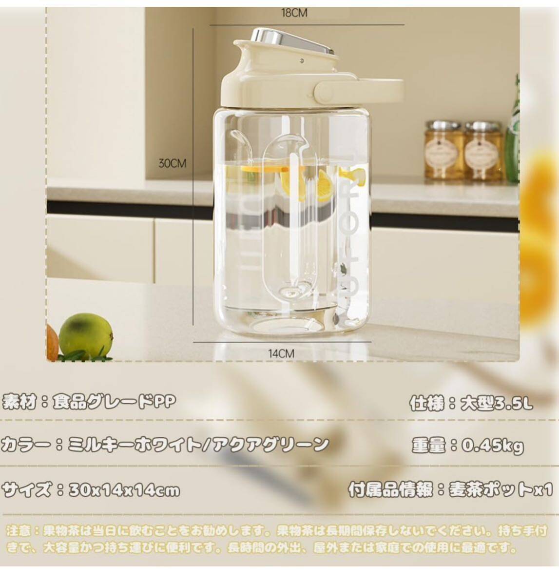 麦茶ポット 横置き ピッチャー お茶ポット ドリンクサーバー ウオーターサーバー 冷水筒 耐熱 3.5L 注ぎ口にフィルター付き ロック式スイッチ ドーパミン不含有 冷蔵庫 水差し アウトドア 広口 持ちやすい