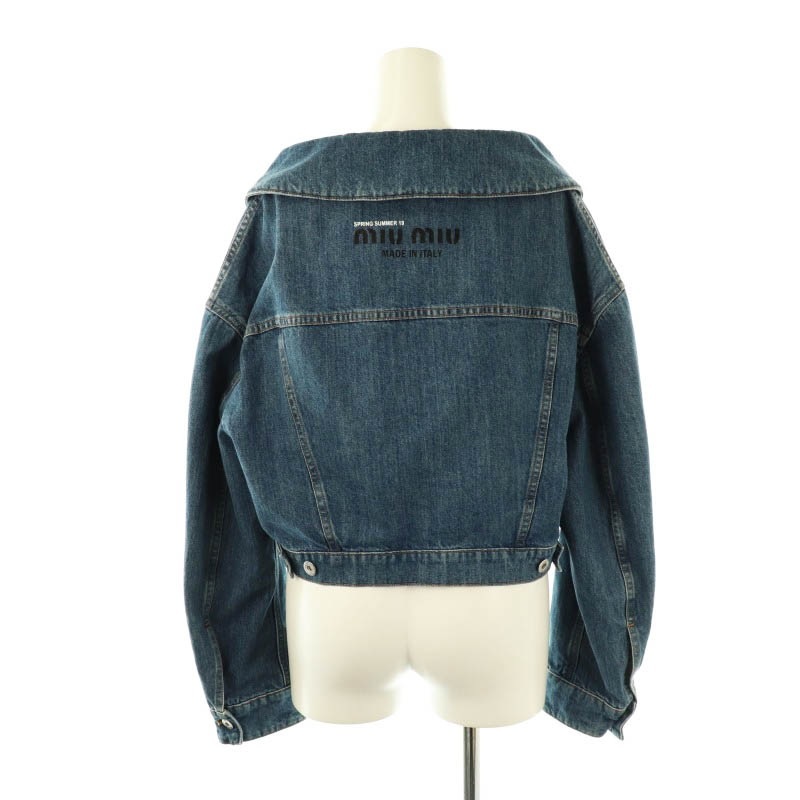 ミュウミュウ miumiu GWB046 ロゴプリント クロップドデニムジャケット Gジャン ジージャン 38 ブルー /ES ■OS レディース