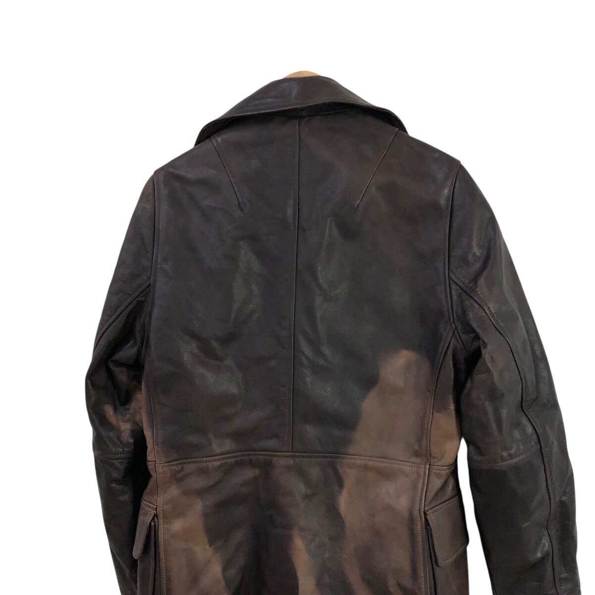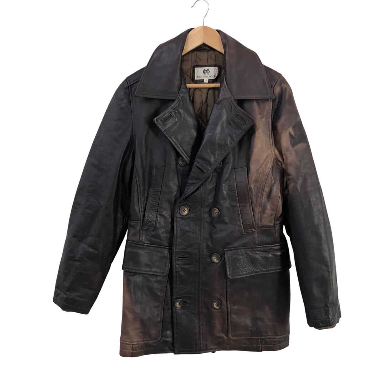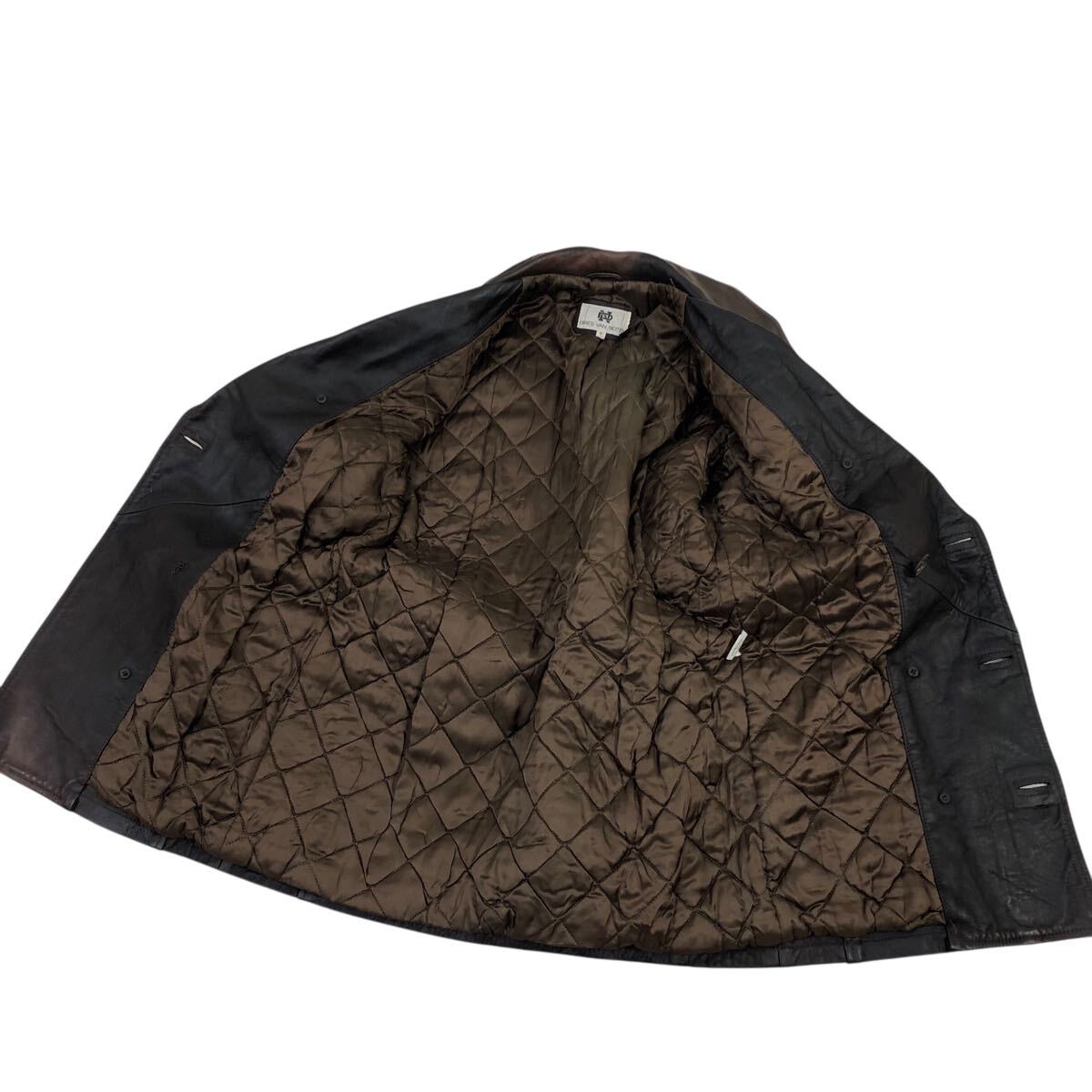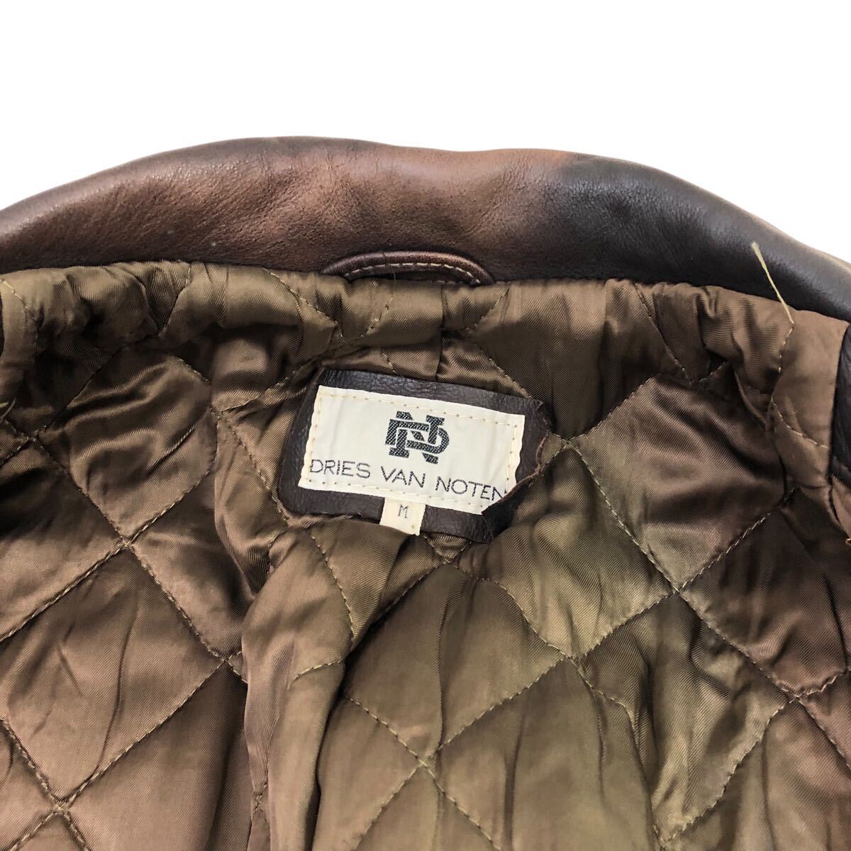 ※9H-70 初期タグ 本革 DRIES VAN NOTEN ドリスヴァンノッテン レザー ダブル コート ジャケット 上着 茶系 裏地キルティング メンズ M