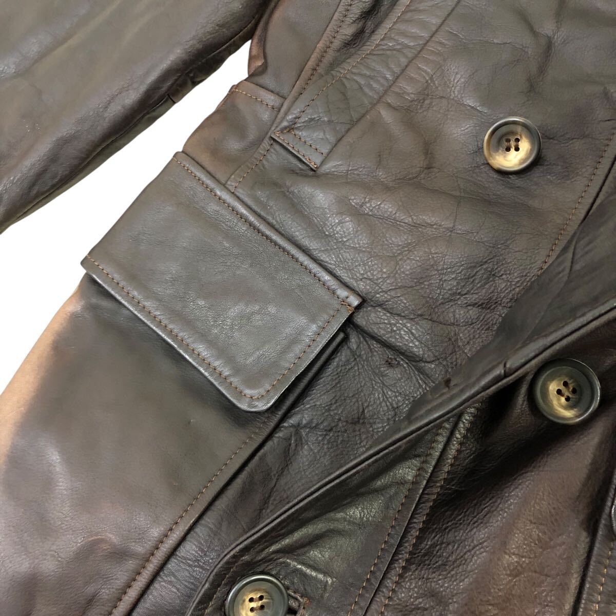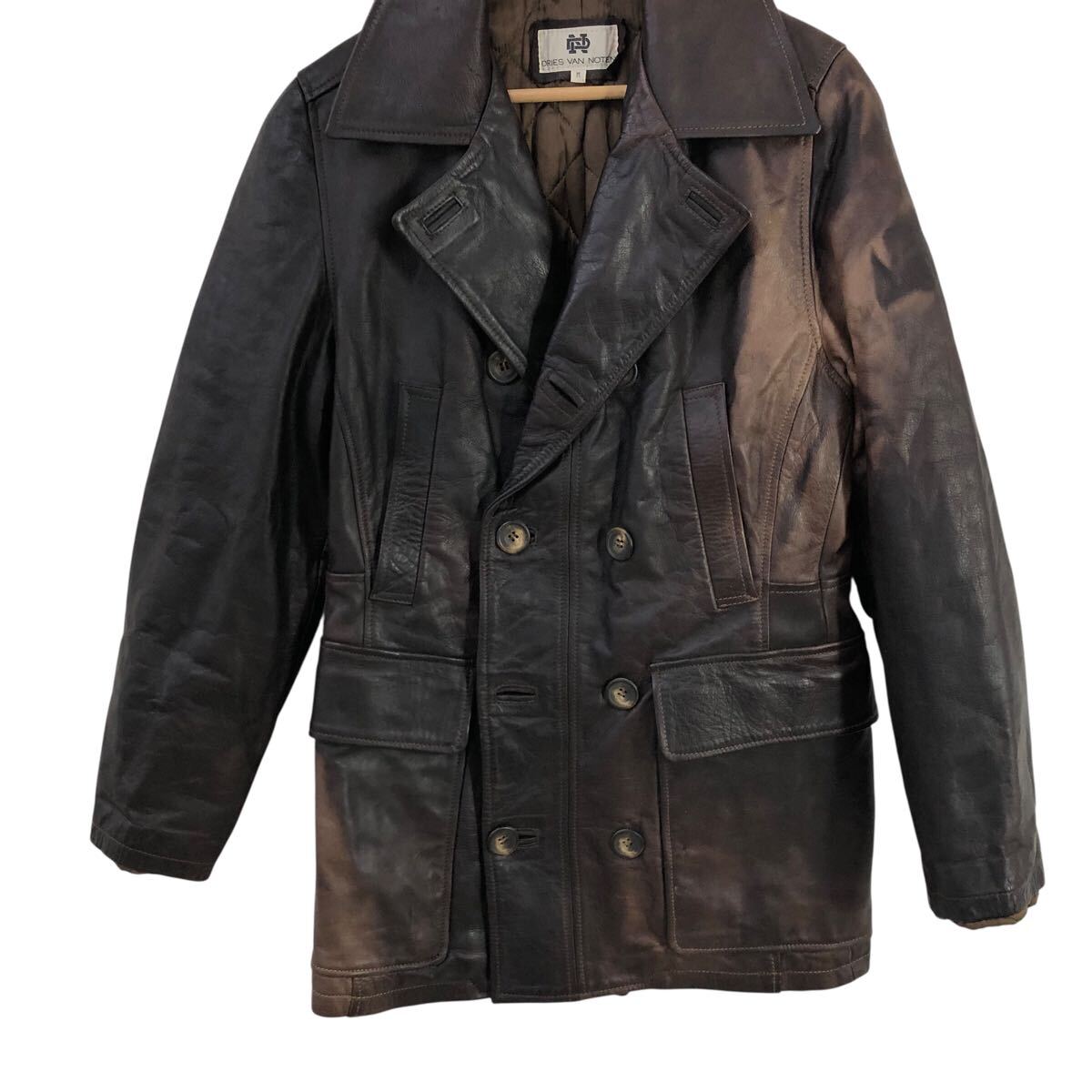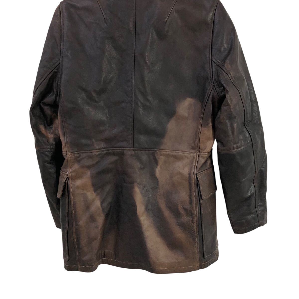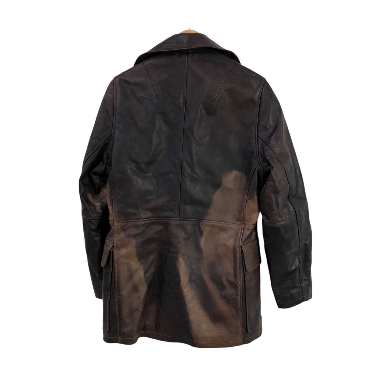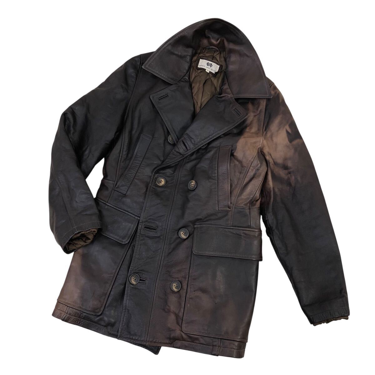 ※9H-70 初期タグ 本革 DRIES VAN NOTEN ドリスヴァンノッテン レザー ダブル コート ジャケット 上着 茶系 裏地キルティング メンズ M