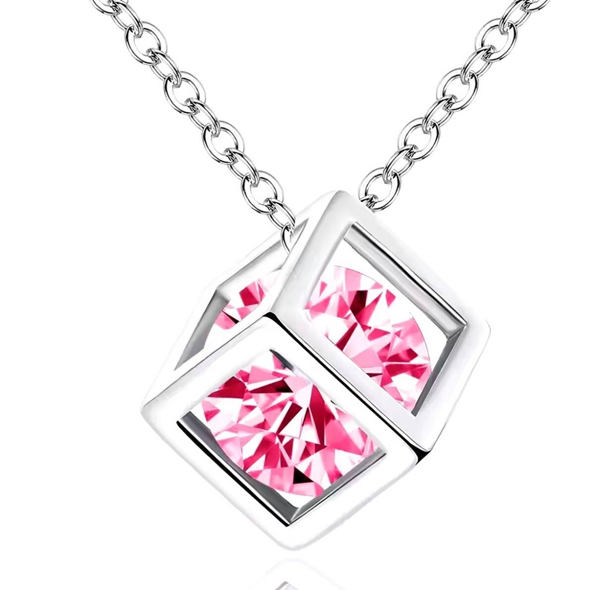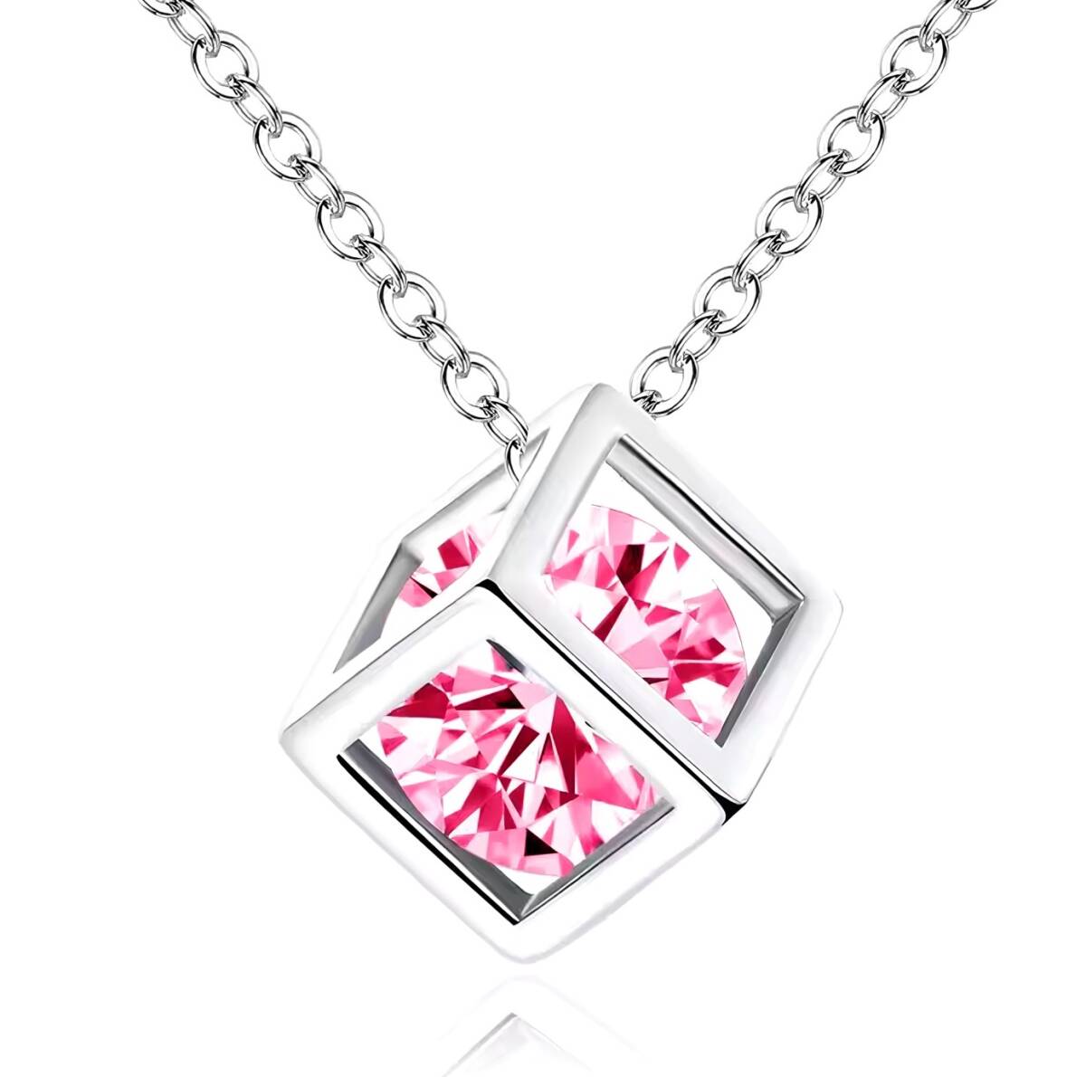 新品1円~★送料無料★桃水晶ピンクダイアキューブ プラチナ仕上925シルバーネックレス誕生日プレゼント旅行連休秋祭冬ギフト国内発送