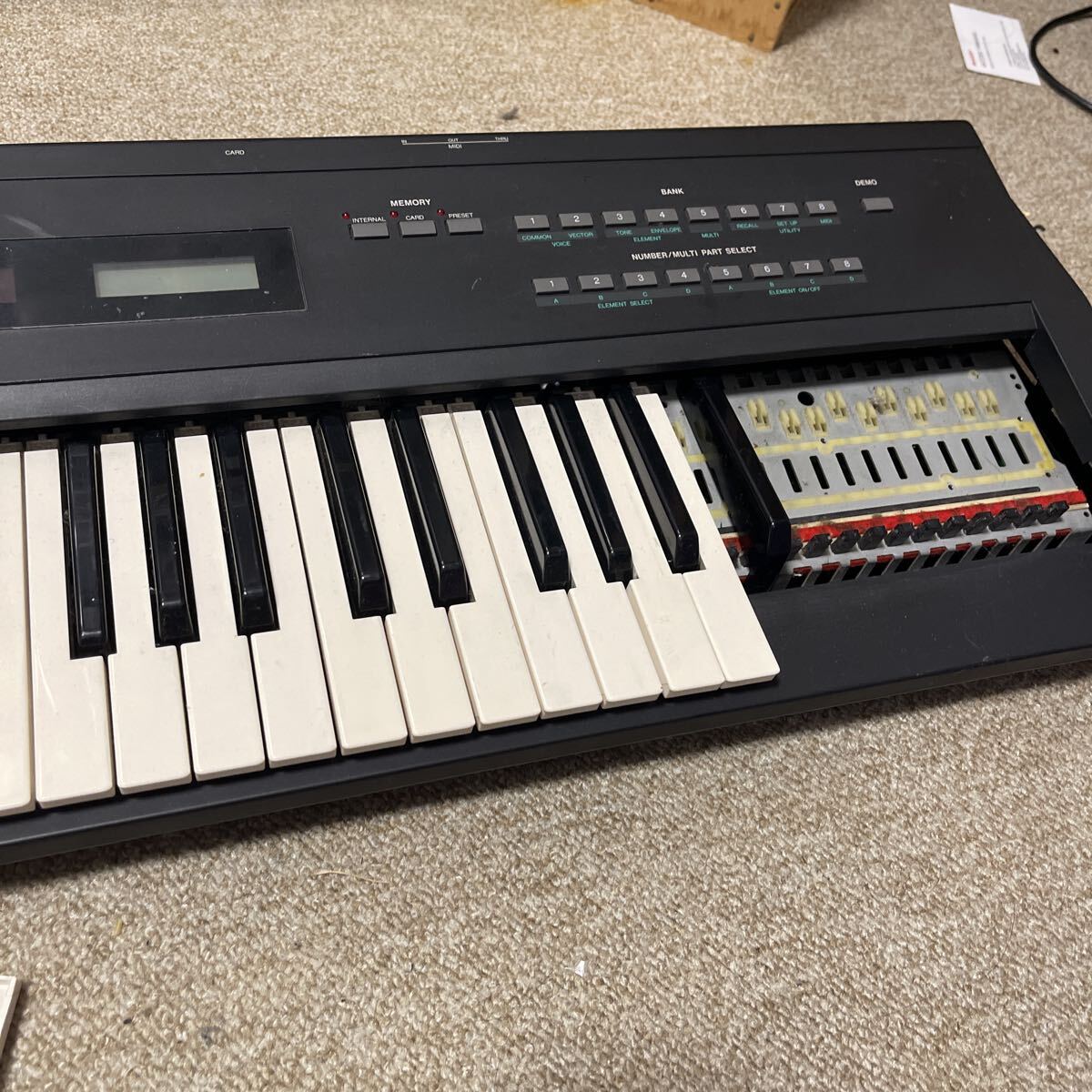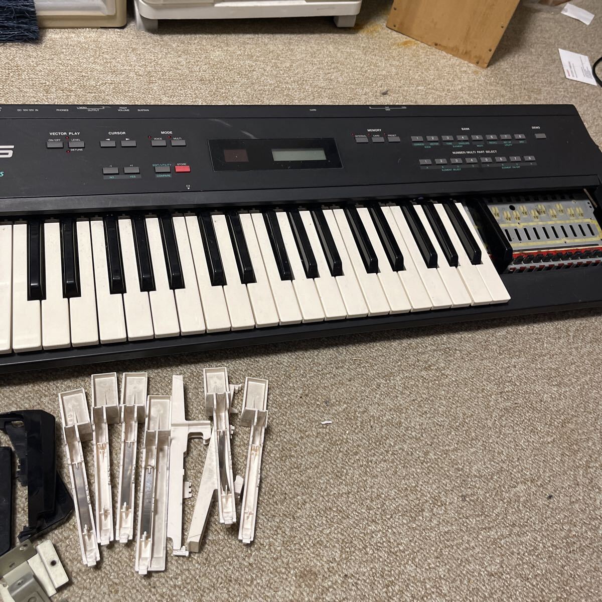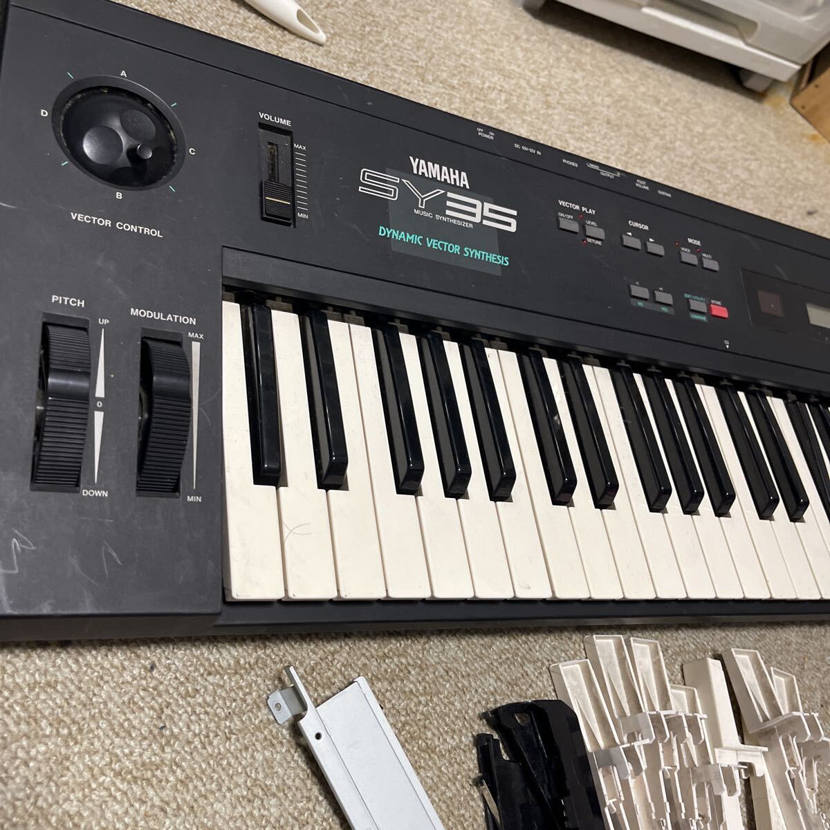 商品説明 | YAMAHA シンセサイザー SY35 部品取り 元々使用できている商品だったのですが、1本割れているキーを交換しようとして バラしていたら訳が分からなくなりました。 当方はこれ以上無理なので、このまま出品させていただきます。 マザーボードは別で出品しましたので、それ以外のものとなります。 外れているキーは使えないとみてください。(またすべての本数ありません) 部品どりとしますのでノークレームノーリターンにてお願いします。 | |