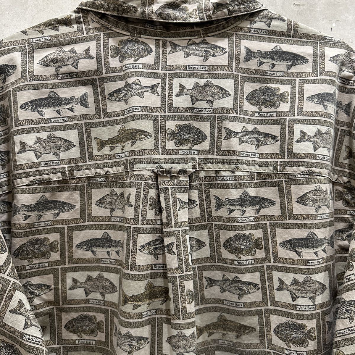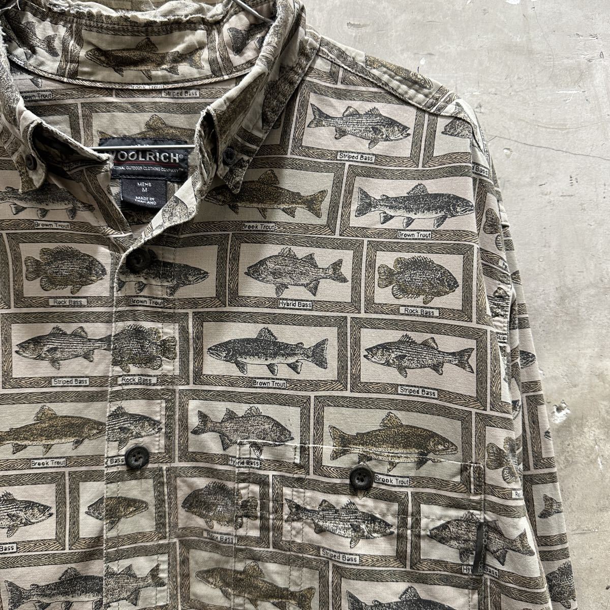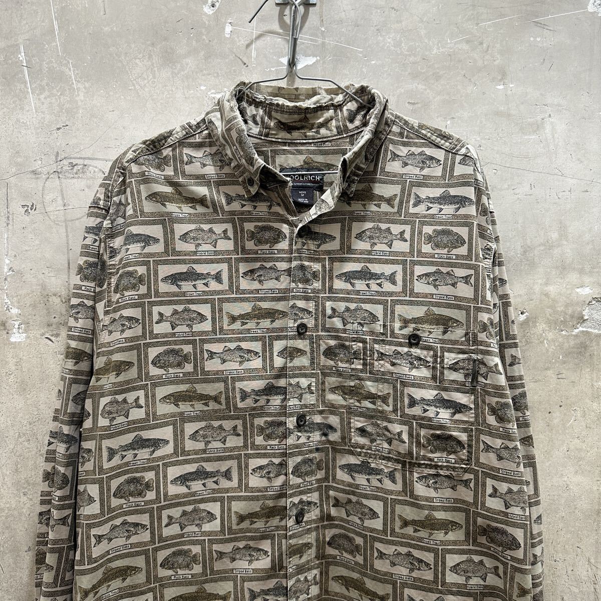 US古着ウールリッチ 魚柄シャツ ブラックバス 長袖 WOOLRICH