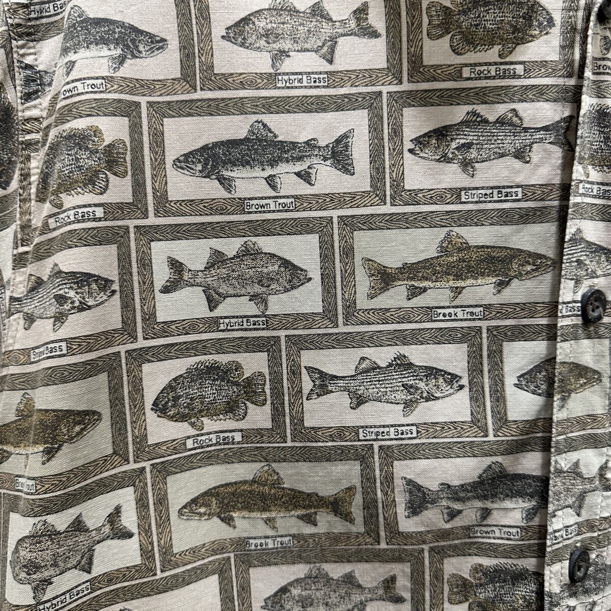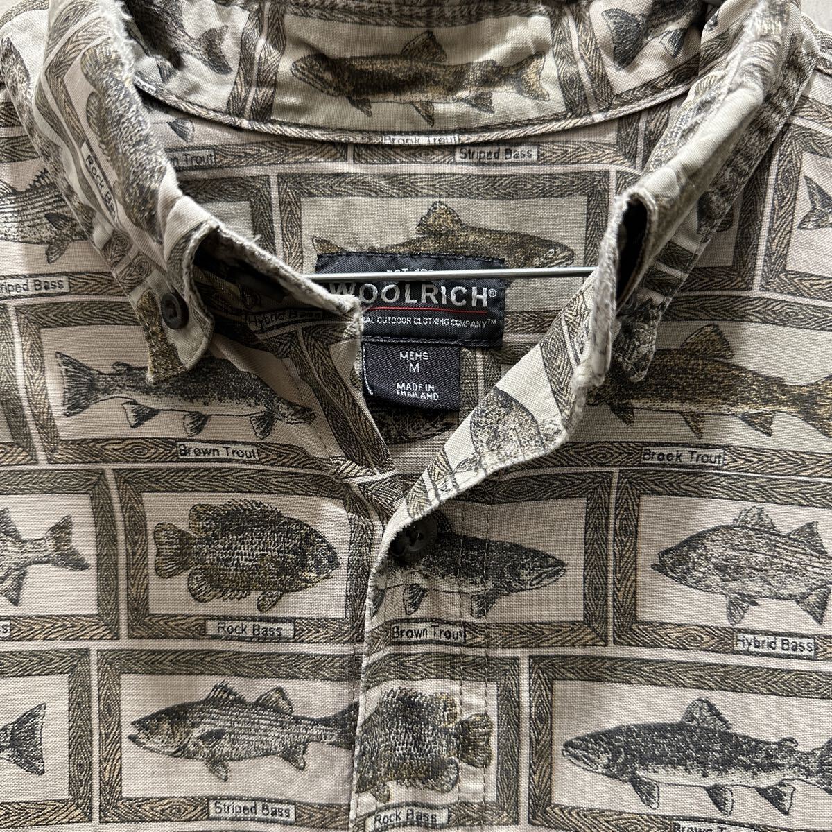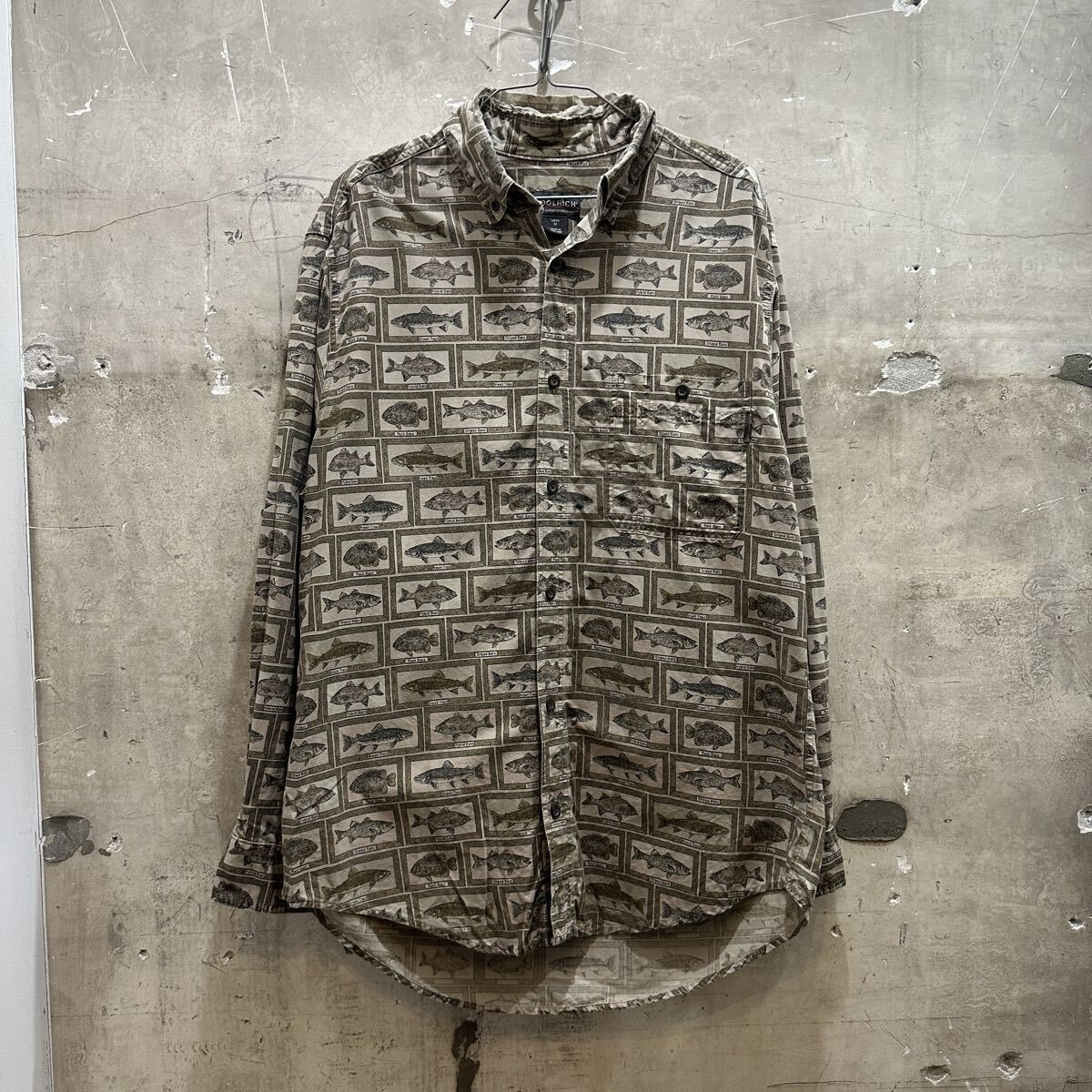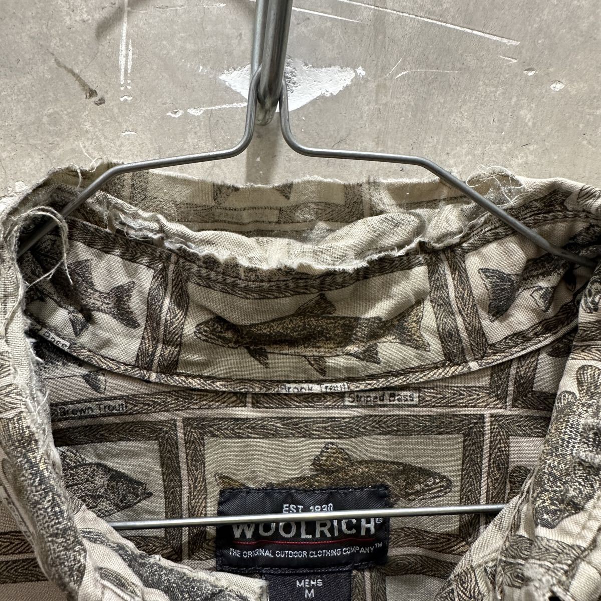 US古着ウールリッチ 魚柄シャツ ブラックバス 長袖 WOOLRICH