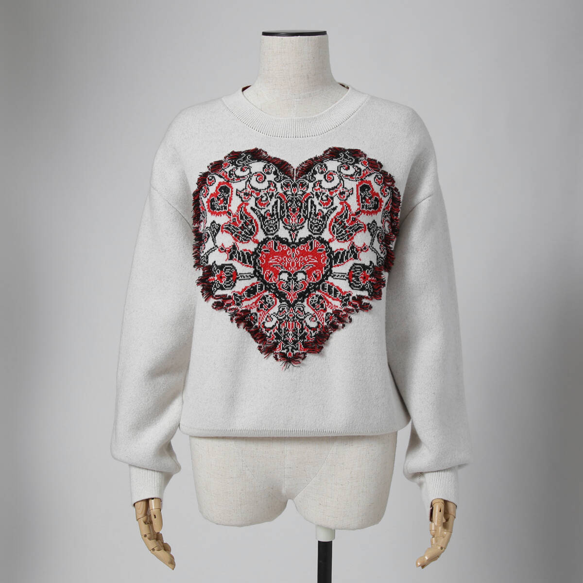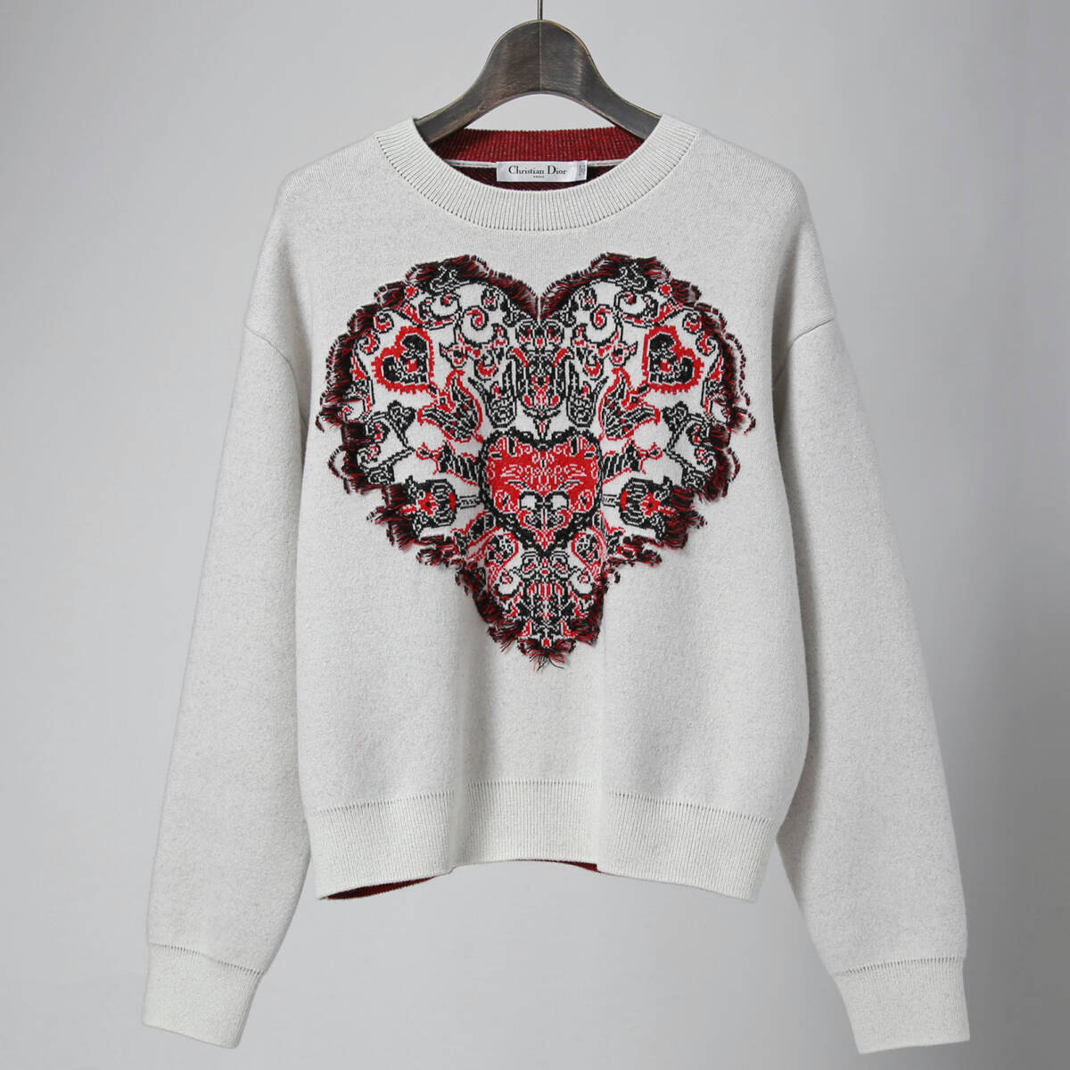 厚手のニットを使用したバンダナモチーフのレディーディオールの長袖ニット