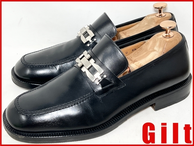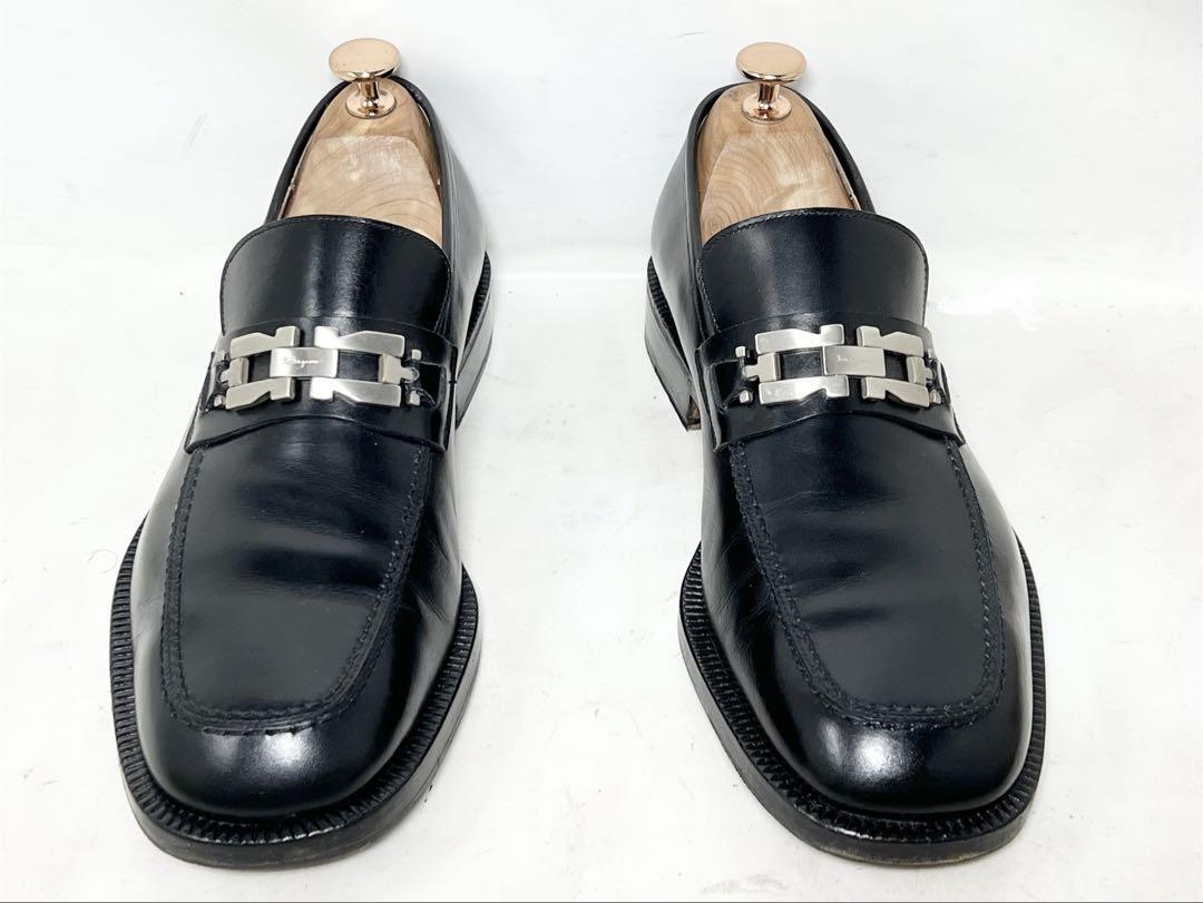 即決★美品 イタリア製 Salvatore Ferragamo★6.5EEE=約24.5cm レザービットローファー サルヴァトーレ フェラガモ 黒 ブラック ガンチーニ