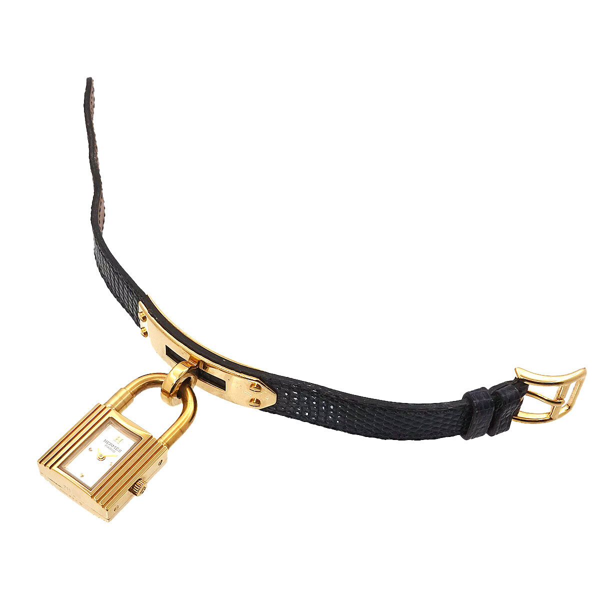 | 商品概要 | エルメスを代表する「ケリーバッグ」の「カデナ」をモチーフにした定番人気の腕時計“ケリーウォッチ”です。高級感溢れるリザードのベルトにゆらゆらと揺れるカデナがとってもオシャレ。アクセサリー感覚でご愛用いただけるお勧めの逸品です。 |