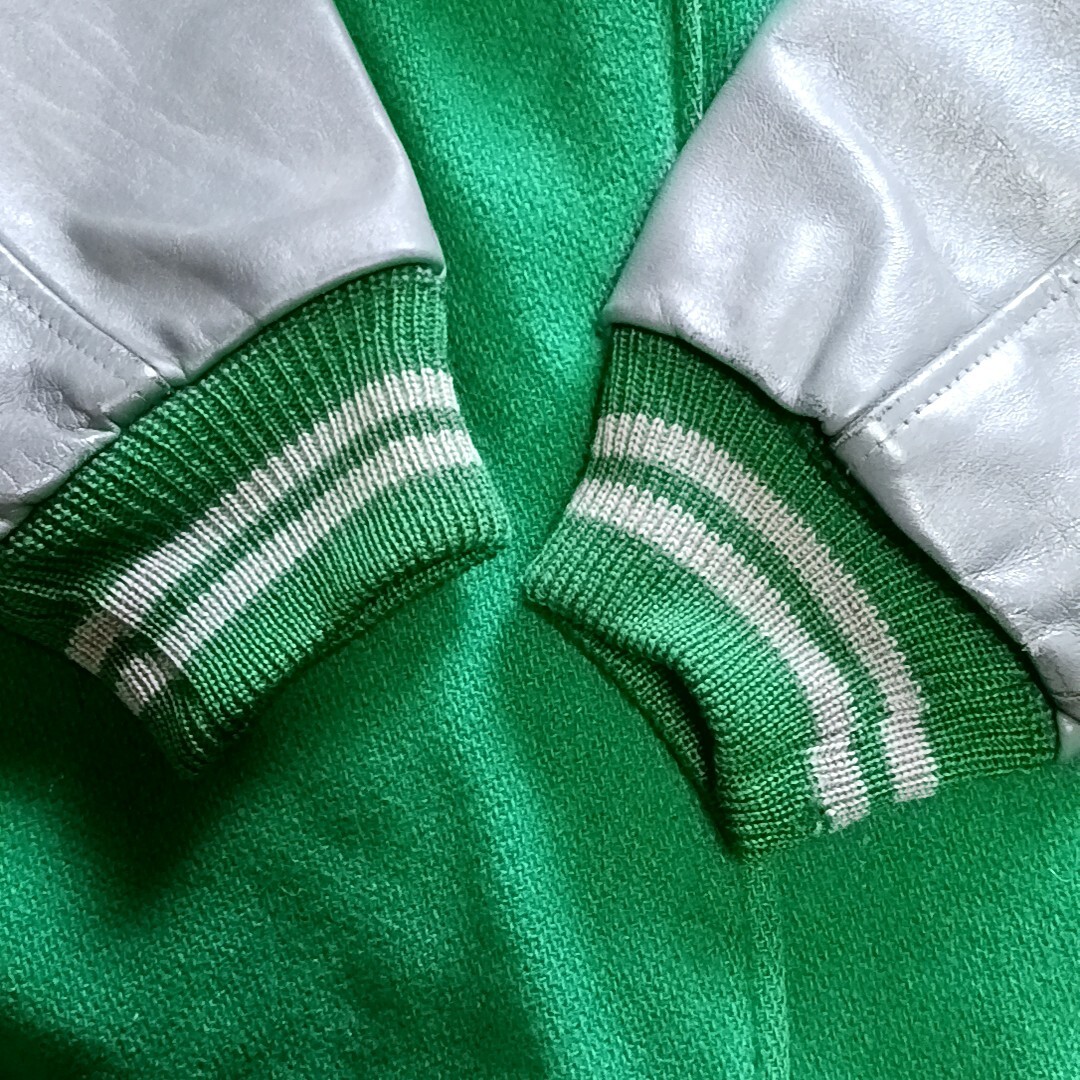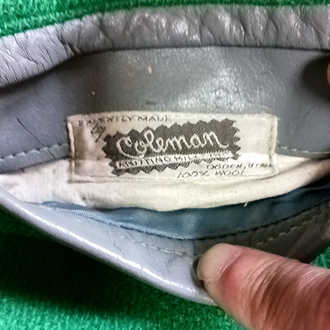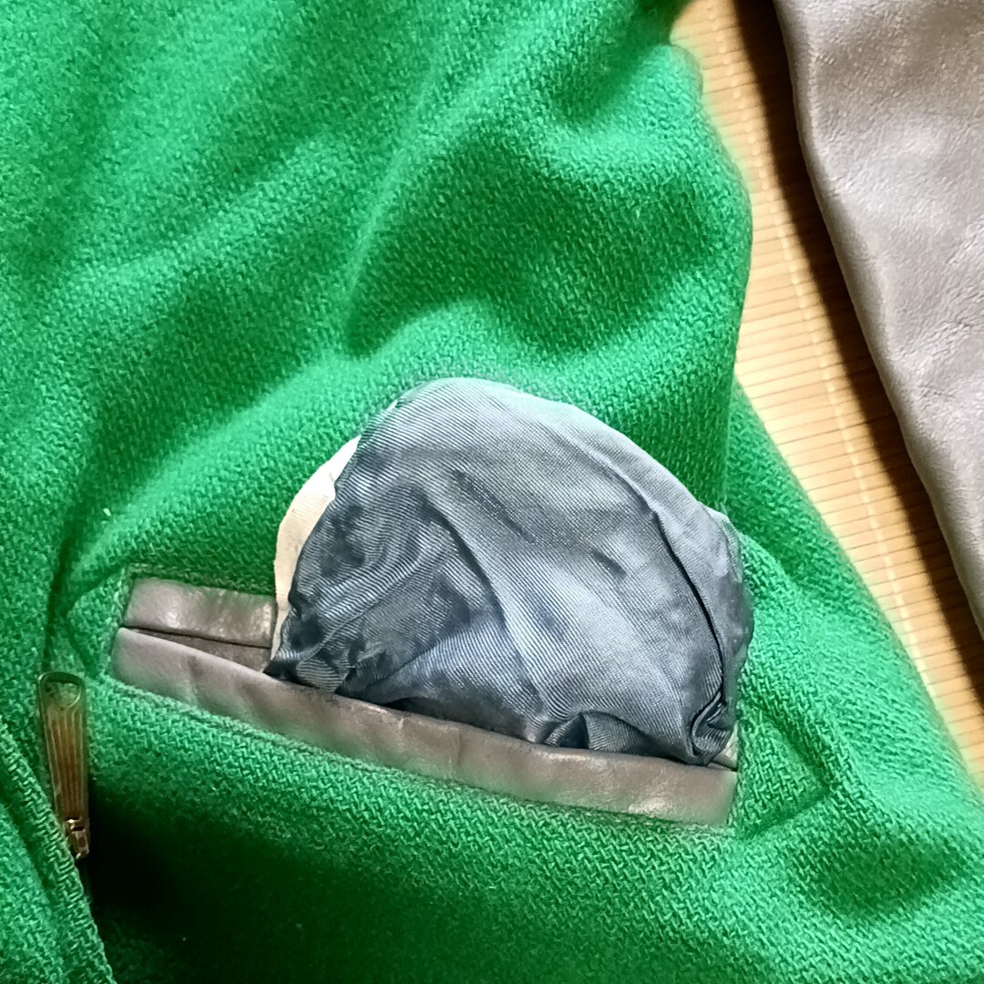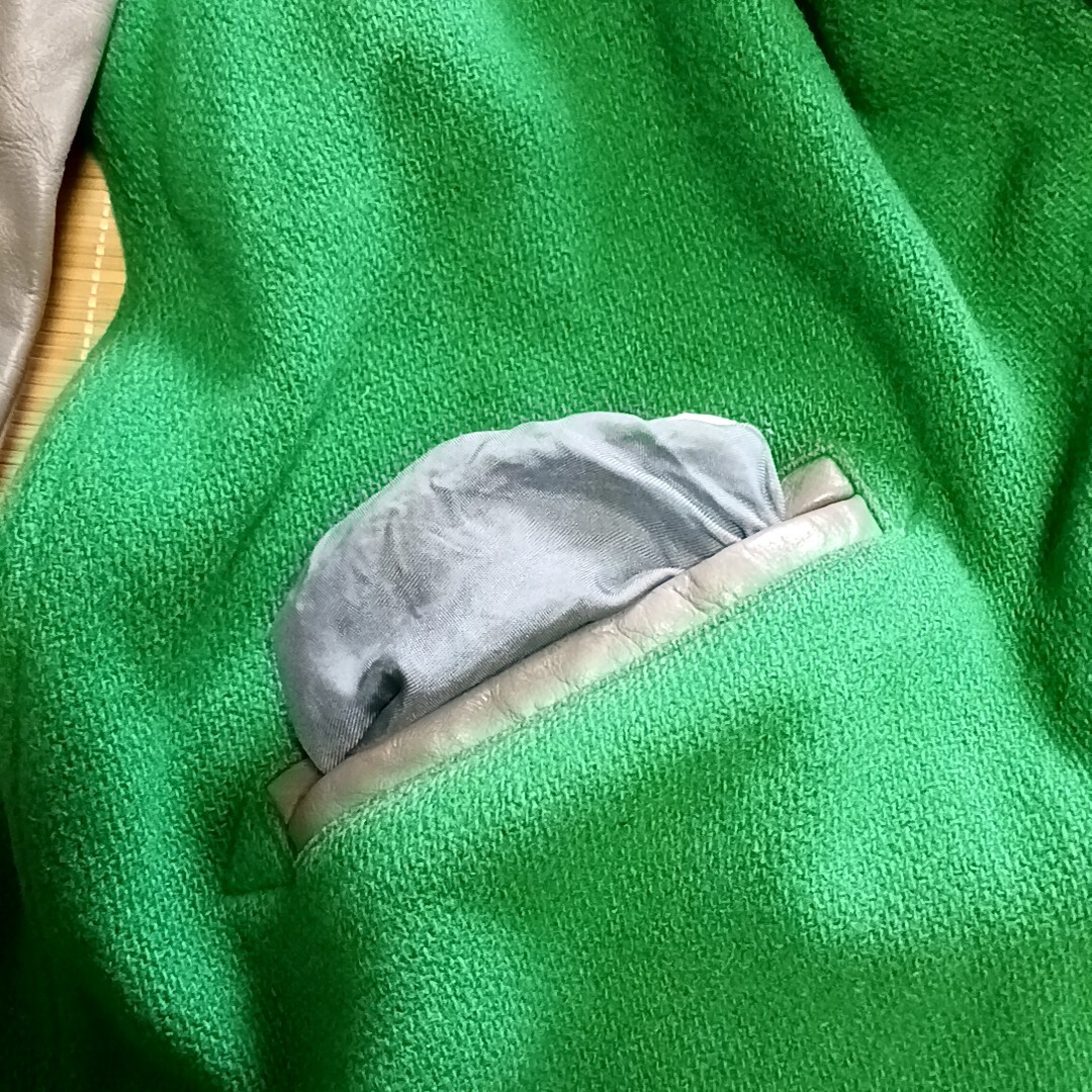 素材:ウール/レザー色はグリーンにグレーのレザー