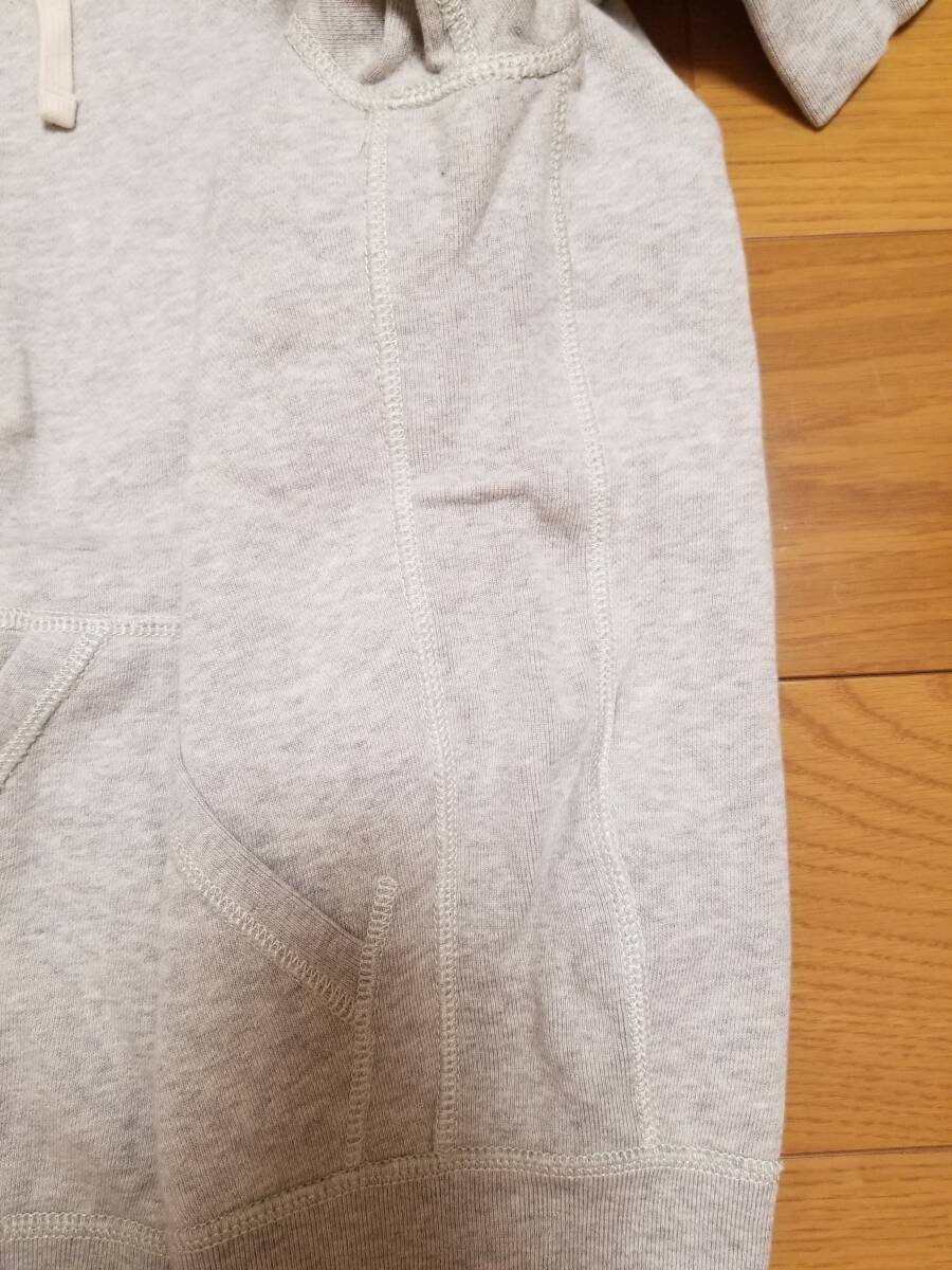 厚手のスウェットパーカーになります。(裏地が起毛素材ですので9月、10月くらいに着ると暑いと思います。11月くらいに着るのが丁度いいくらいの厚さです。)