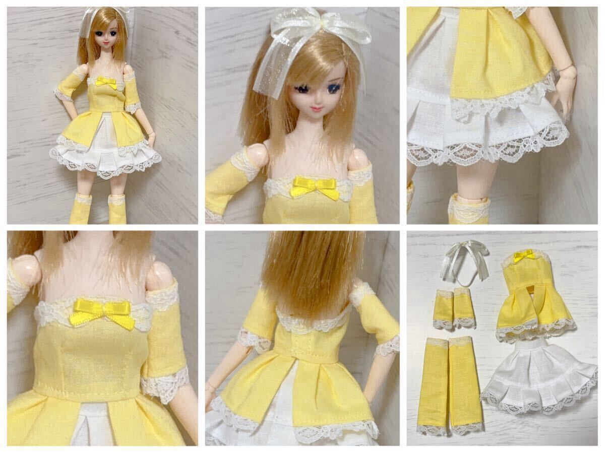 ピンク、ブルー、イエローの3色セットのドレスです。三人のドールが同時に着用可能なトリオドレスになります。バラ売りは、それぞれのカラー1セット1300円です。バラ売りご希望の場合は、コメントよりお声かけ下さいませ。