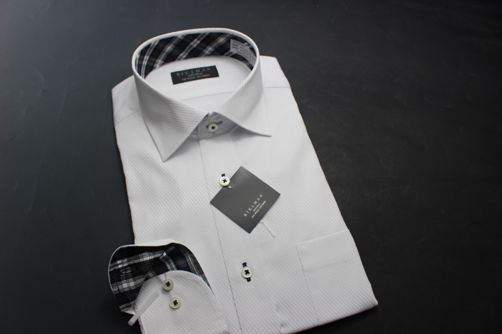 2枚セット【新品】BIELMAN(山喜) ワイドカラー/ワイシャツ長袖  標準体/形態安定 L(41-84) 白ドビー/綾織柄 UND105/001(7C551.577