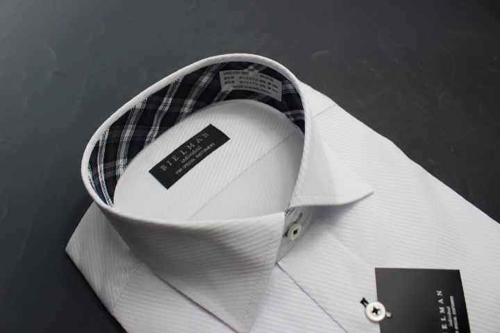 2枚セット【新品】BIELMAN(山喜) ワイドカラーワイシャツ長袖 標準体 形態安定 L(41-84) 白ドビー/綾織柄UND105/001