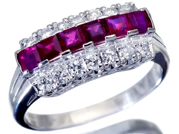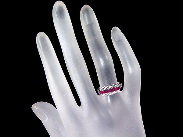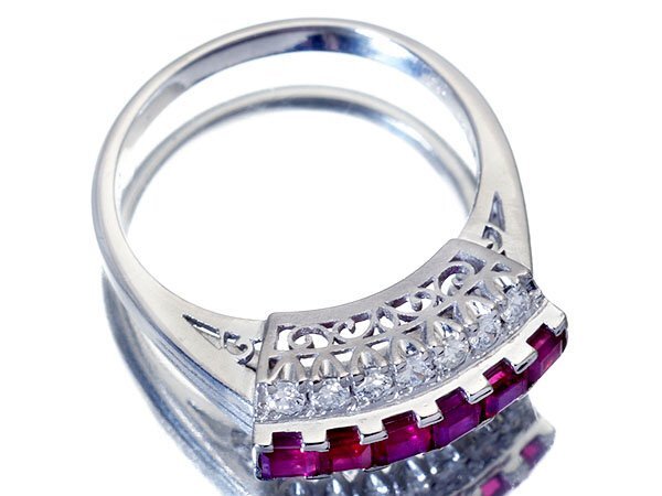 妖艶なピンキッシュレッドカラー煌く良質天然ルビー総計0.85ct&ダイヤモンド総計0.30ctを素敵に宝飾した、高級Pt900リングを激安価格で特別大放出致します!