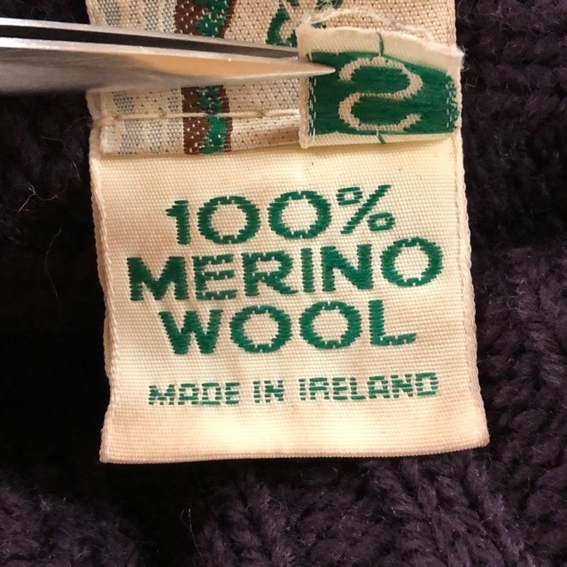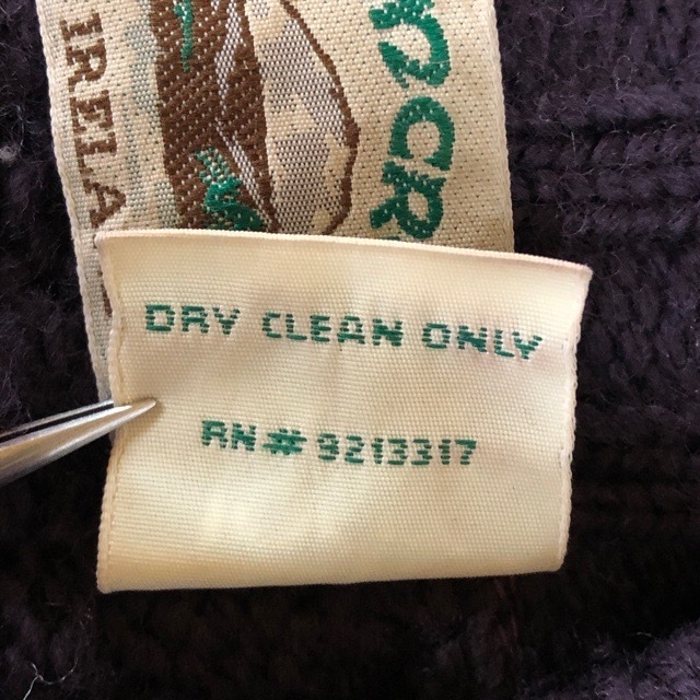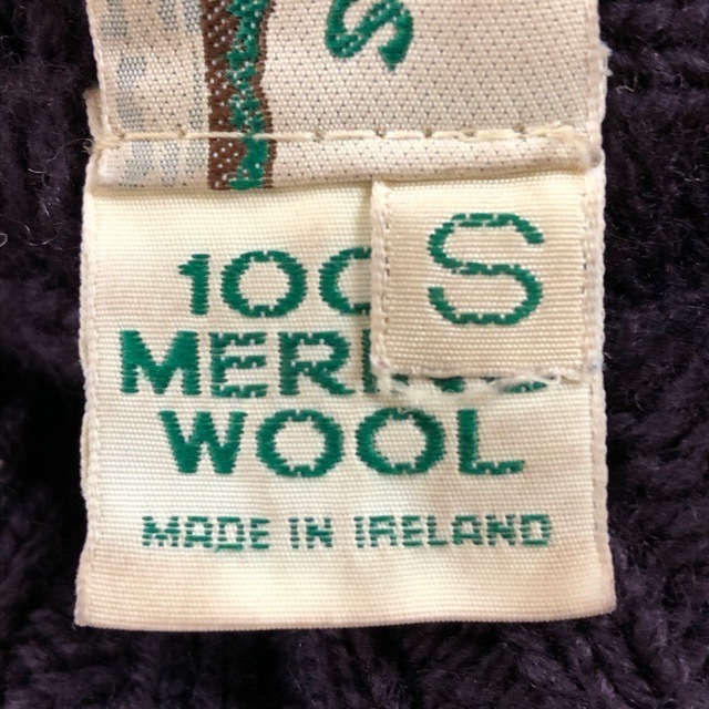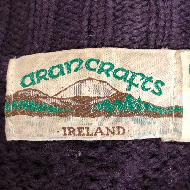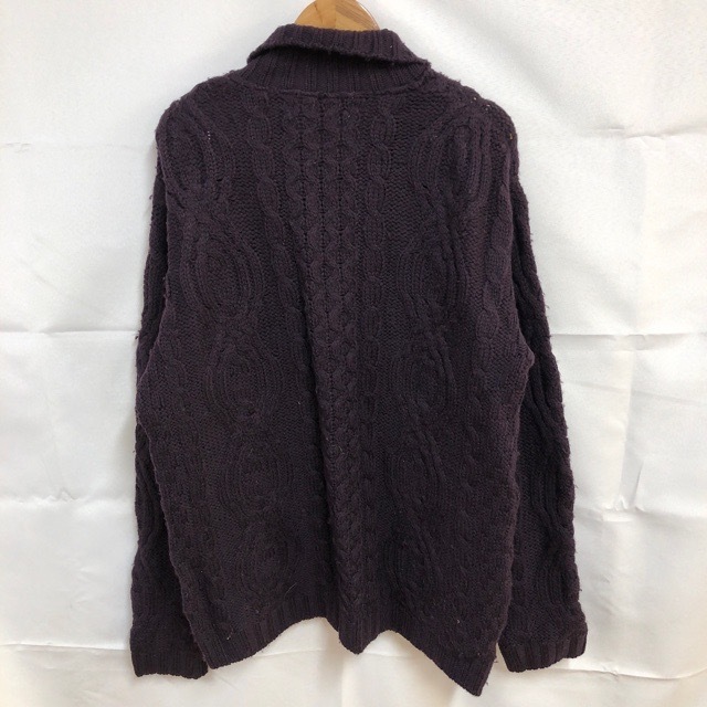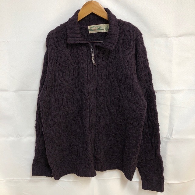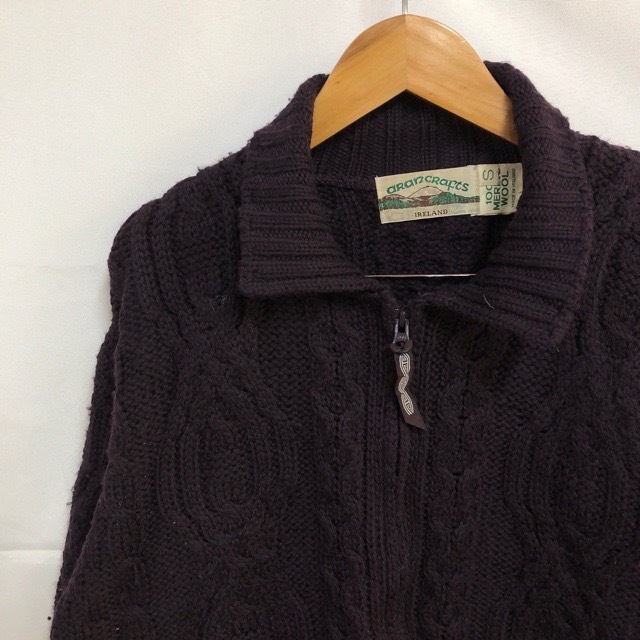 A790 アランクラフト S ユーロ古着 ウール ケーブル編み カーディガン パープル ARANCRAFTS メンズ