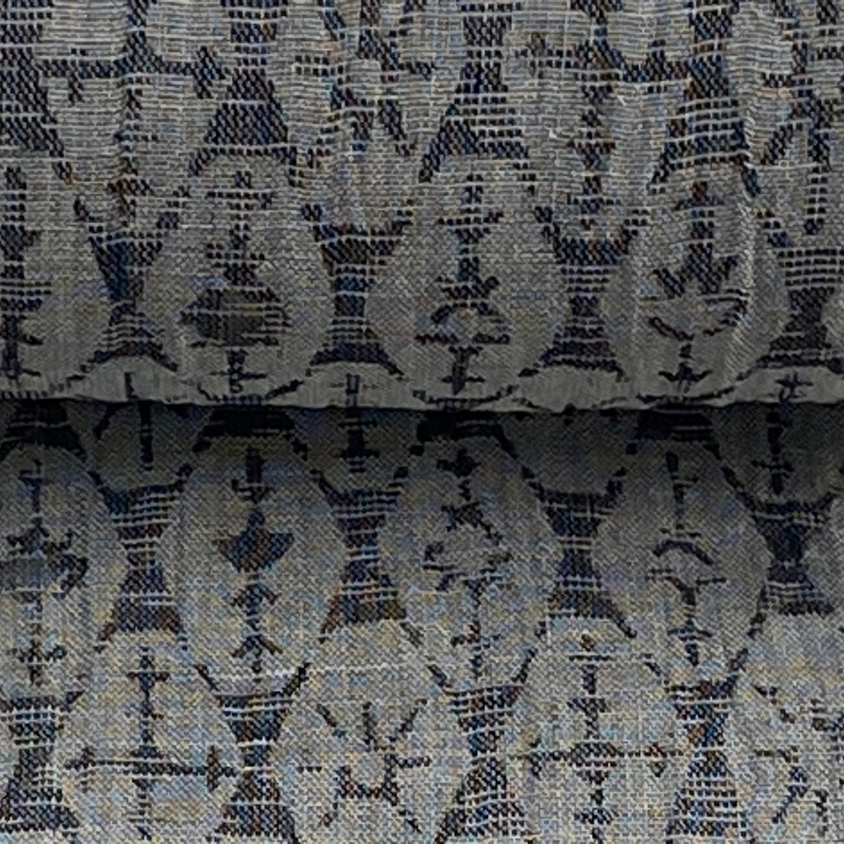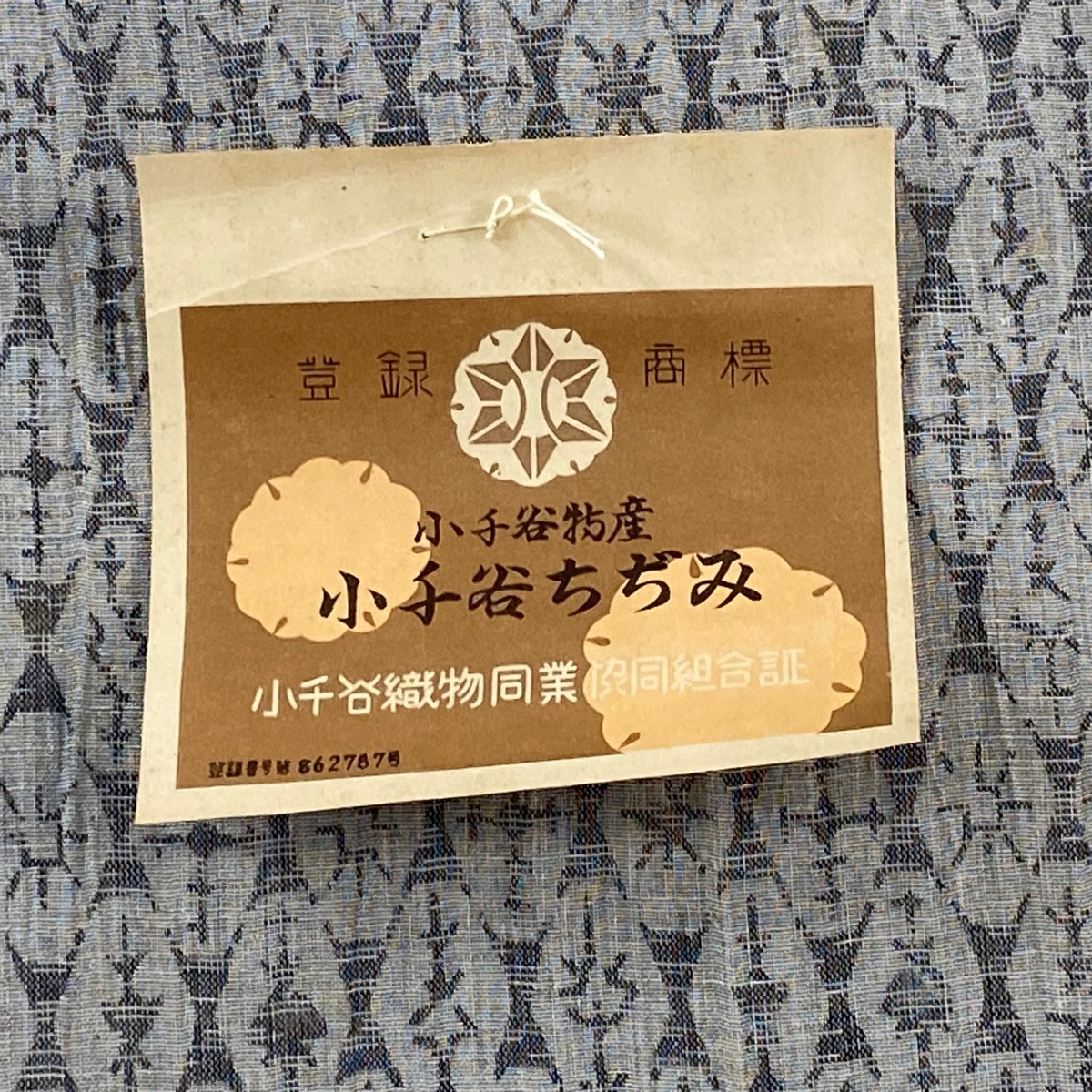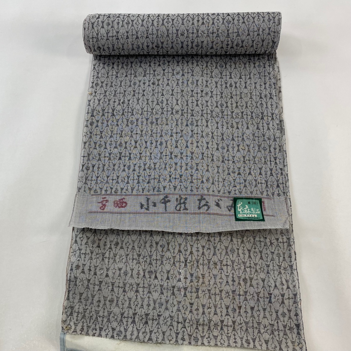 反物 逸品 紬 小千谷縮 証紙 幾何学模様 灰色 麻 【中古】 |