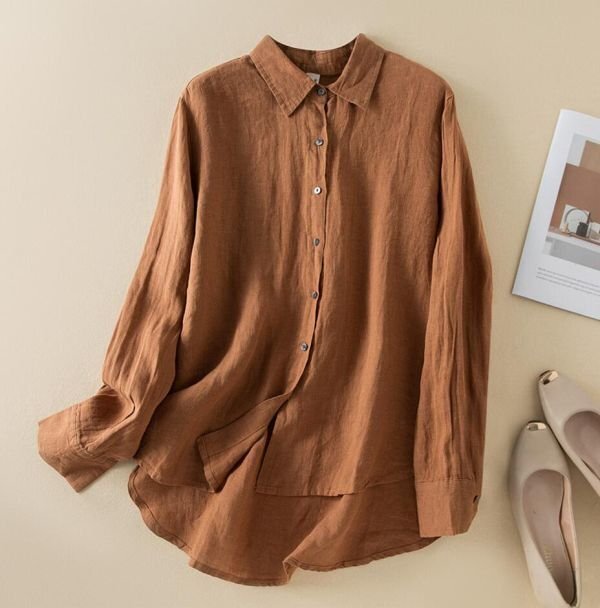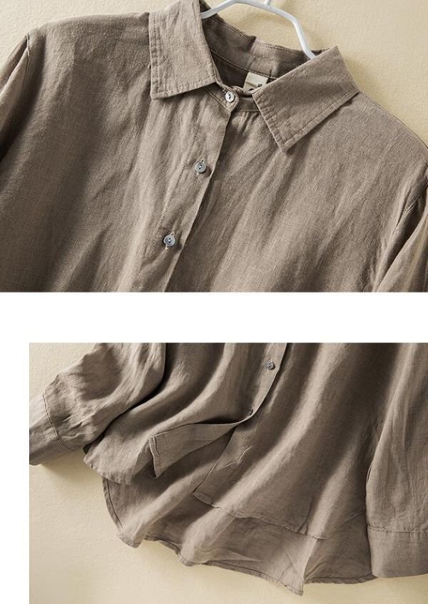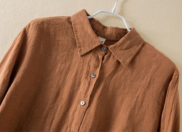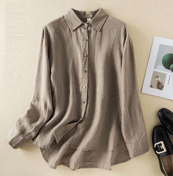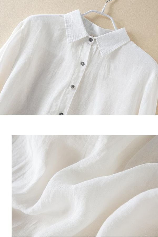 春新品 カジュアル リネン チュニック ゆったり 大きいサイズ 長袖 ブラウスシャツ トップス★白/Lサイズ