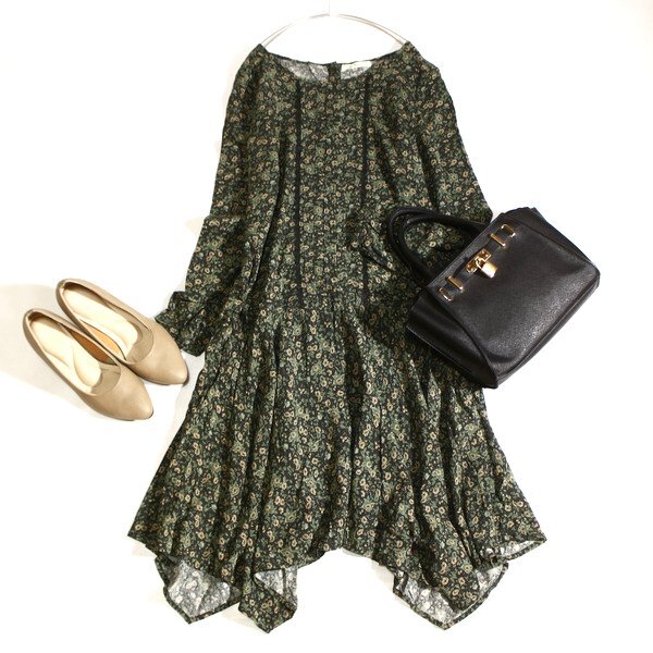 大人可愛いイレギュラーヘムの柔らかレーヨン・ワンピースです。