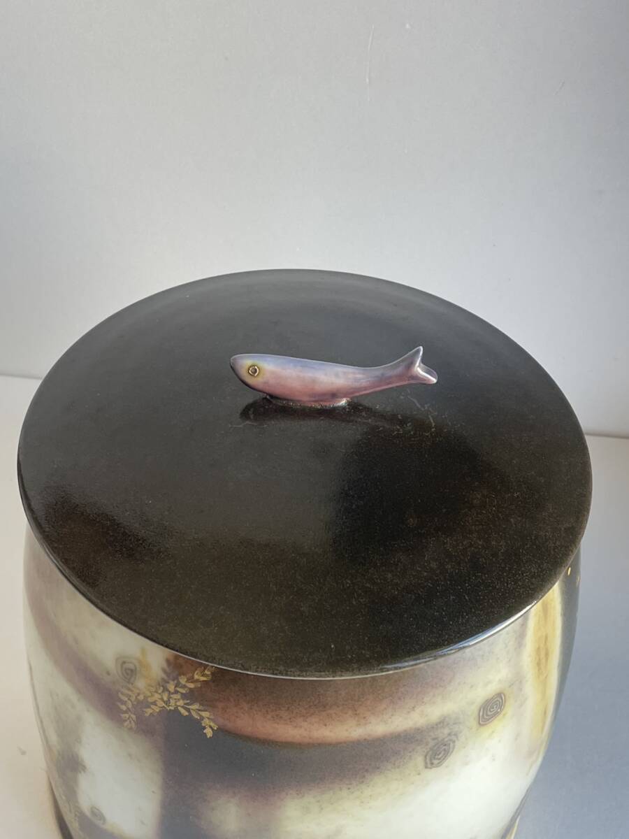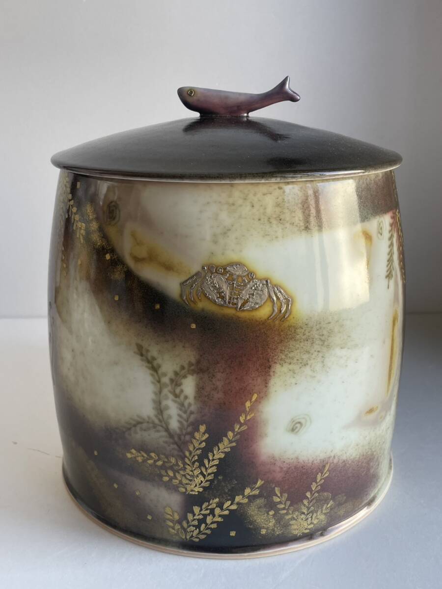 【和美】美品 伊藤北斗作 釉描色絵金銀彩 蟹図 蓋付 壷 共箱 本物保証 73
