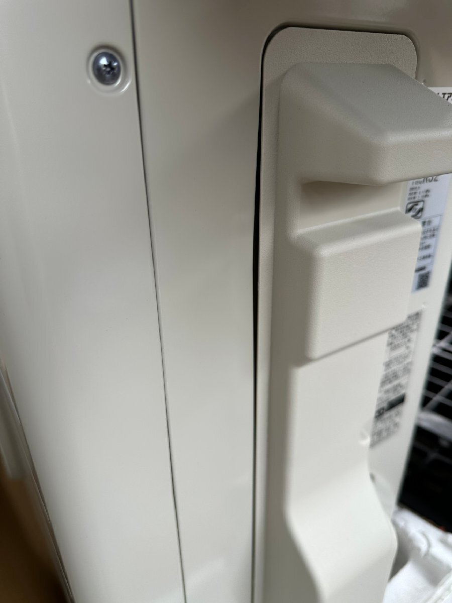 室外機フィン部分に多少の歪み、室外機弁カバー付近に歪み(画像6)、