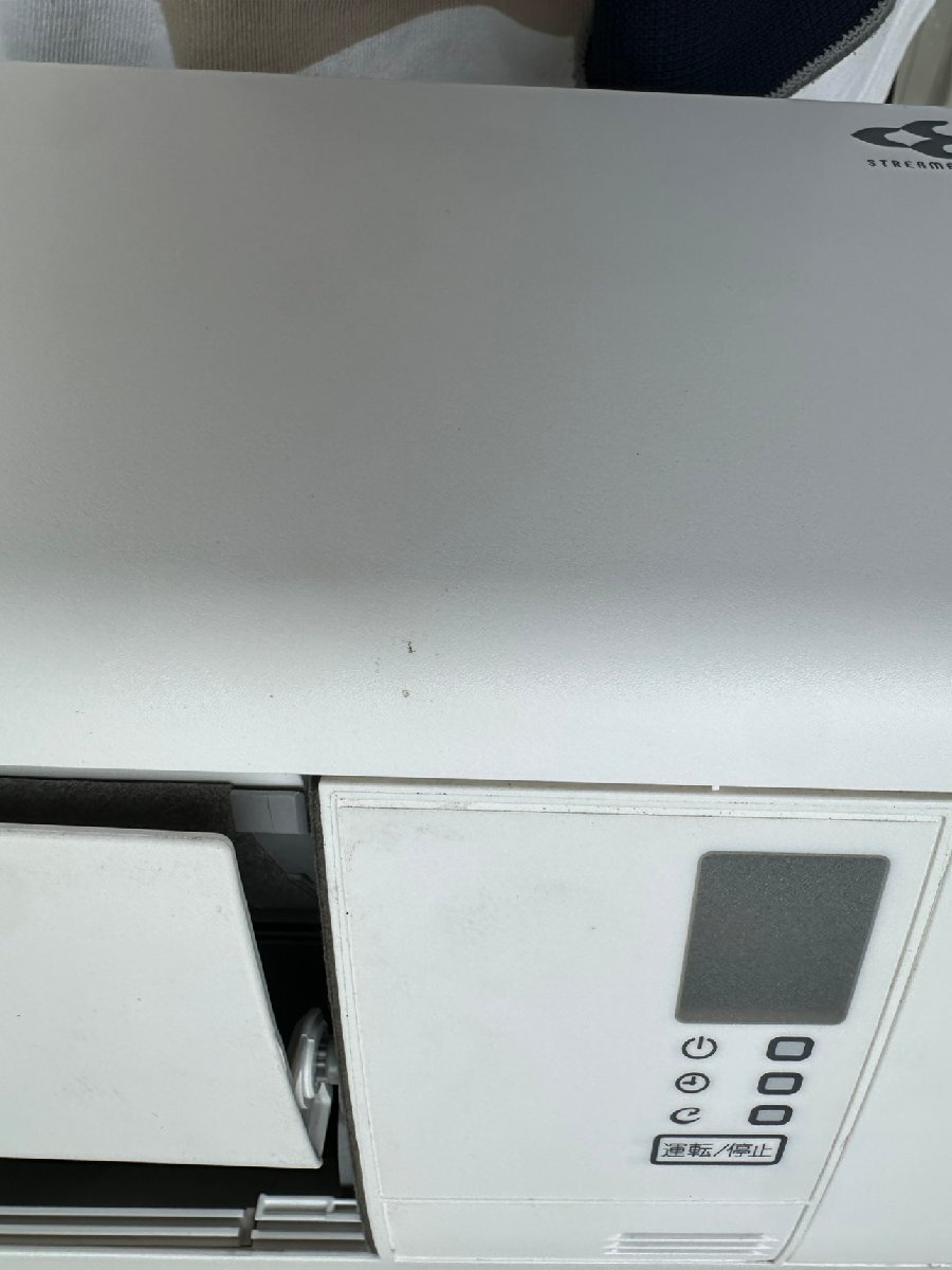 室外機上部に凹み(画像8)、室内機に多少の汚れございます(画像9)。