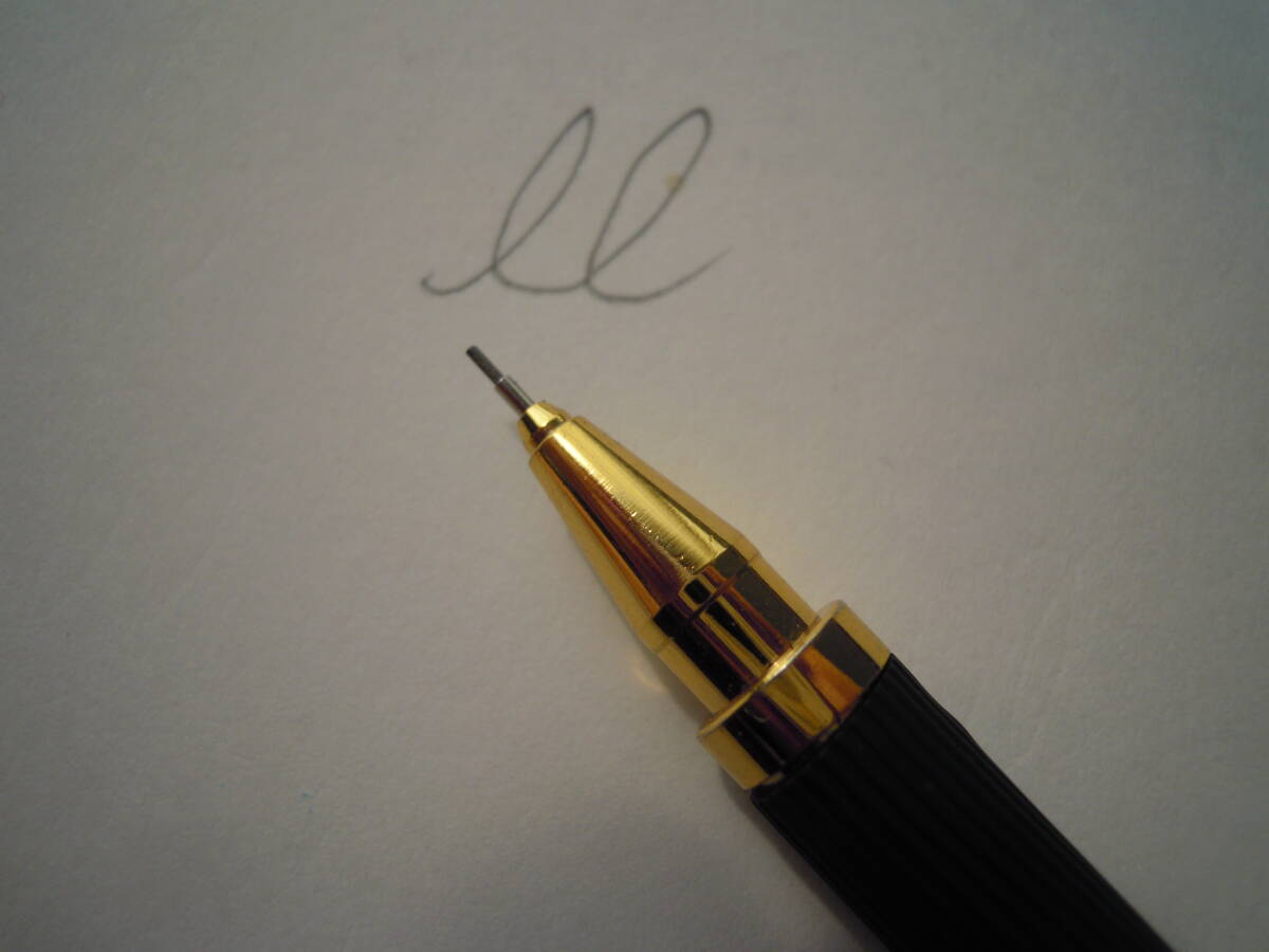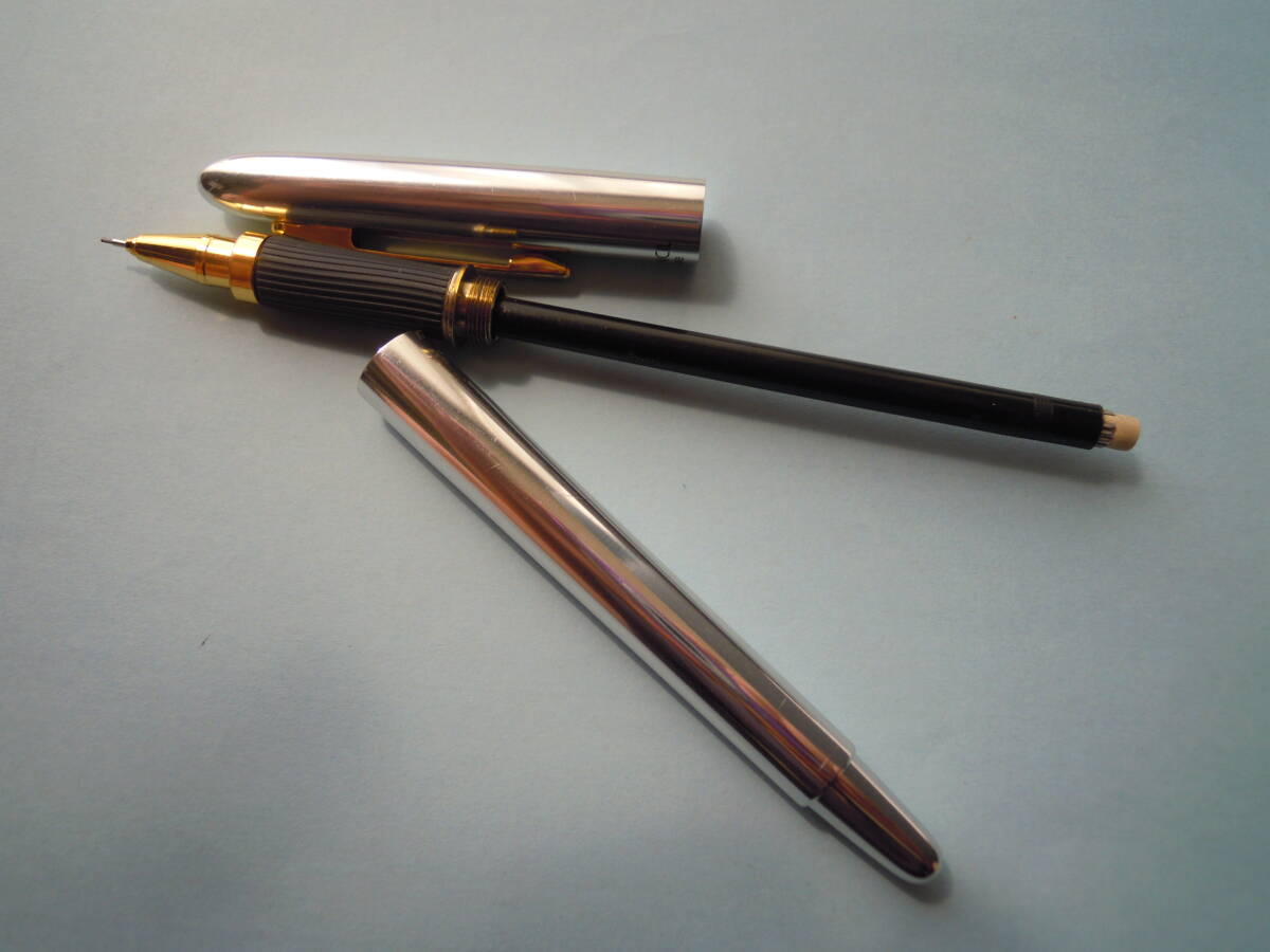 | キャップを取ってのノック式、芯の繰り出し、反応は良好です。本体に傷やへこみは見当たりません。 |