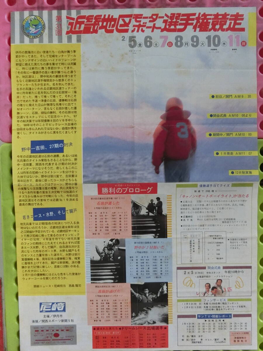第31回 近畿地区モーターボート選手権競走 カタログ,1988_昭和63年 2月 5日 頃,開催日1988_昭和63年02月05日~02月11日,優勝者 津田 富士男,B41枚 発売日 1988_昭和63年 2月 5日 頃 発行 尼崎市 大きさ B4 第31回 近畿地区モーターボート選手権競走 1988/2/5 金 6 土 7 日 8 月 9 火 10 水 11 木 優勝者 津田 富士男 古い カタログです。 神経質な方の入札はご遠慮ください。 背表紙の一部(ホッチキス部分)や本の中等をセロテープで補修している本もあります。 経年による劣化(すれ、ヤケ、シミ、折れ、小さい破れ、汚れ等)があります。 落書き、ページ割れ,ページ抜け、見落とし等が、あるかもしれません。 気になる点などあれば、事前に質問して下さい。 この商品の発送後は、クレーム、返品は、お断り致します。