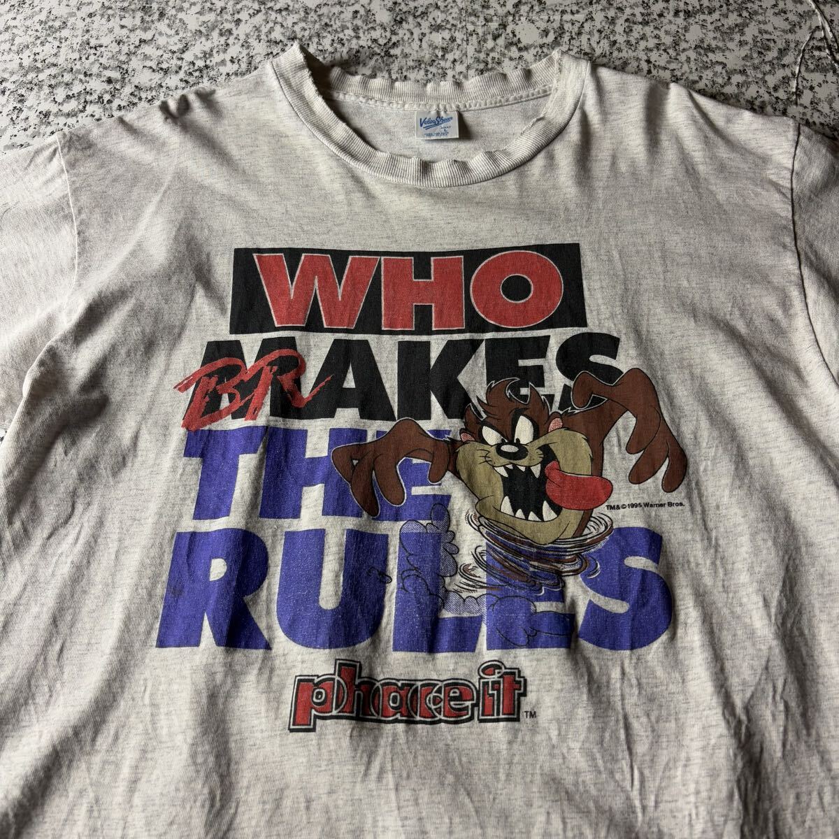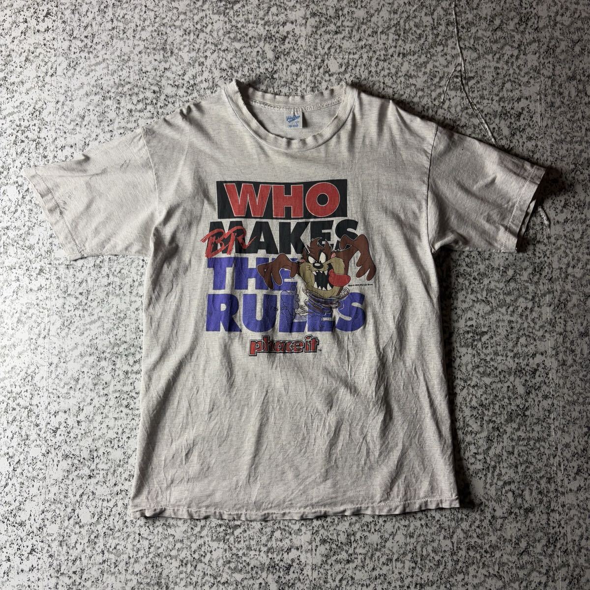 【90s USA製】タズマニアンデビル ボロ ダメージ シングルステッチTシャツ グレー Lサイズ 古着 ルーニーテューンズ
