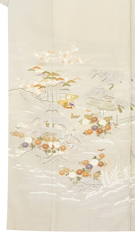 | ※記念感謝祭【仕立無料】純古典特撰訪問着☆京友禅特撰本加工手描多色染、本金、焼箔加工☆四季花茶屋ヶ辻庭園文☆トール仕様 |