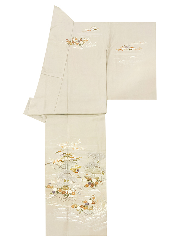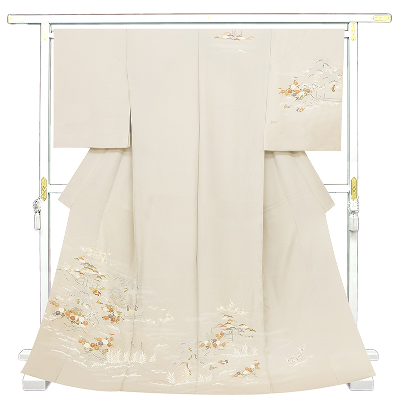 | ★品質・詳細 | ○地色 【こちらの地色は古典のベージュ色系です。】 ○絹織物 ○新品・未仕立の逸品訪問着の仮絵羽です。 ○最高級ちりめん地 ○参考上代 680,000円 |