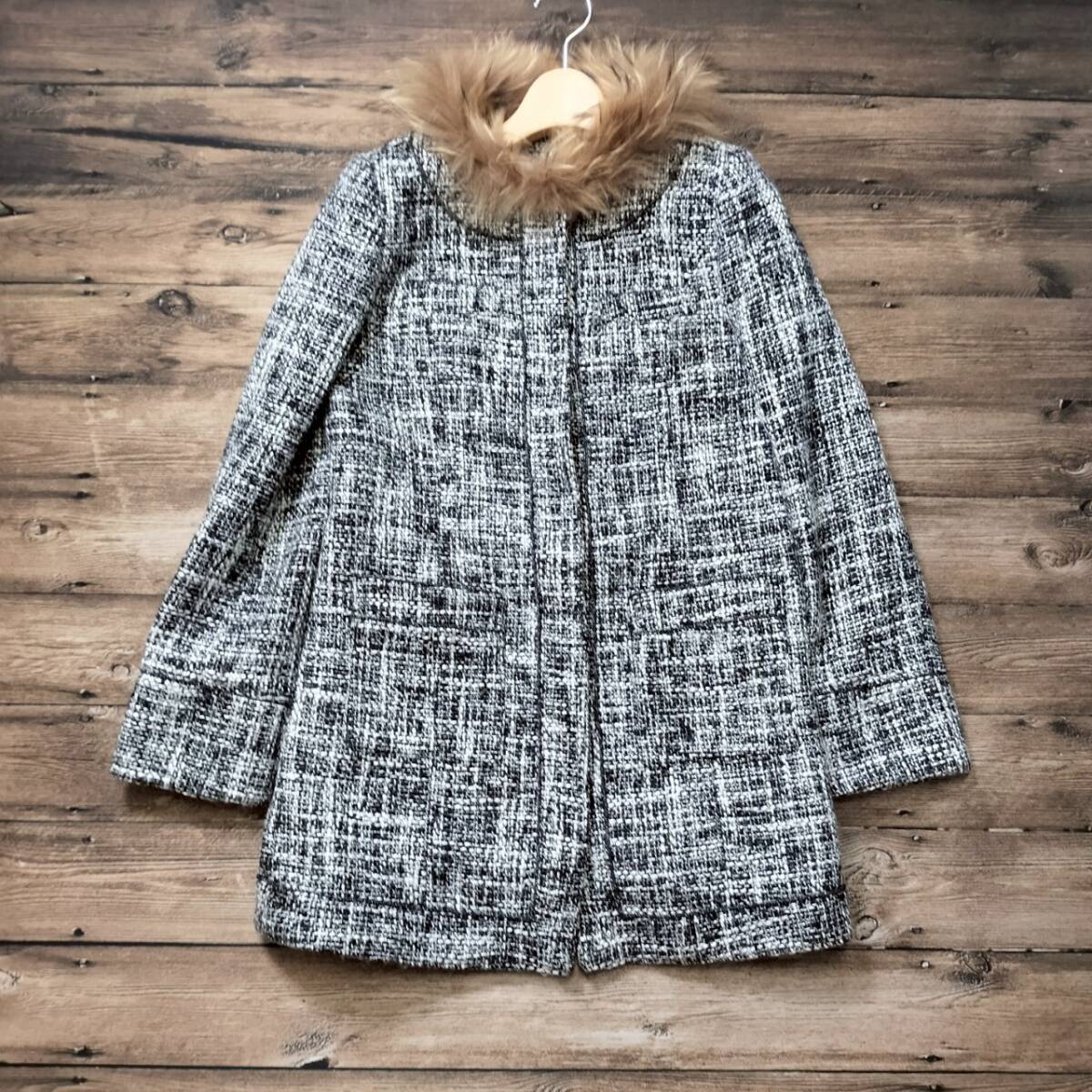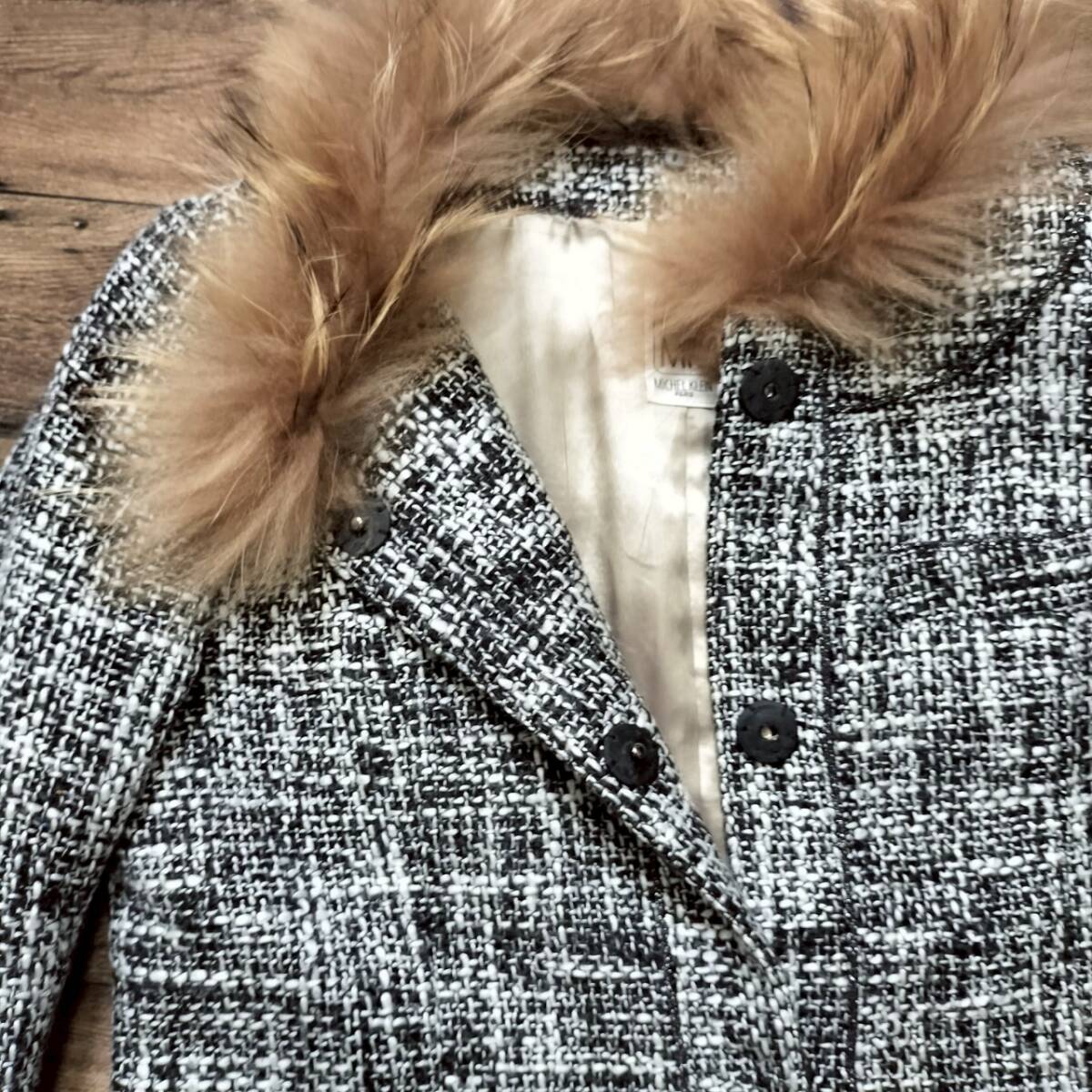 MICHEL KLEIN ミッシェルクラン レディース コート フェイクファー付 ツイード調 グレー系 サイズ38 M相当 上品