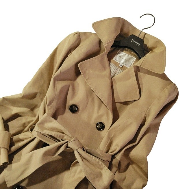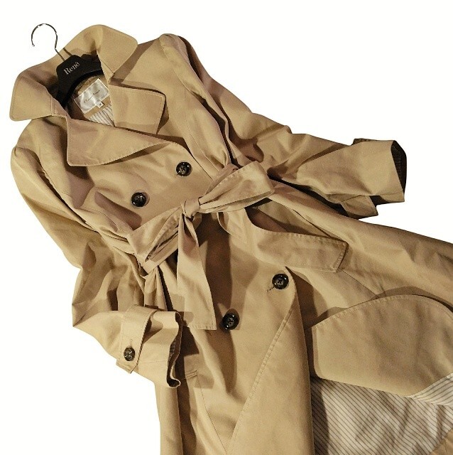 裏地がストライプ柄で見えない箇所も可愛いトレンチコートです♪
