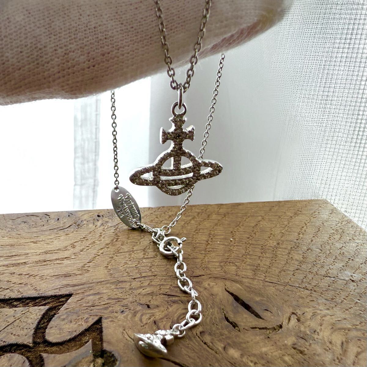 オーブと華奢なチェーンに
