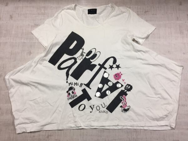 KMK KINGLY MASK キャラクター ヴィジュアル系 病みカワ 原宿 ワンピース トップス 半袖Tシャツ カットソー レディース F 白