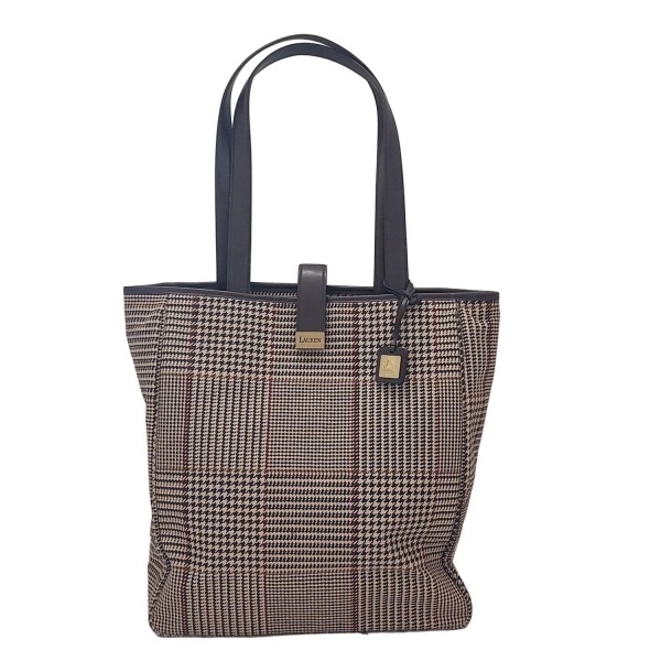 ラルフローレン RalphLauren トートバッグ - レザー ベージュ×アイボリー×マルチ 千鳥格子柄 バッグ