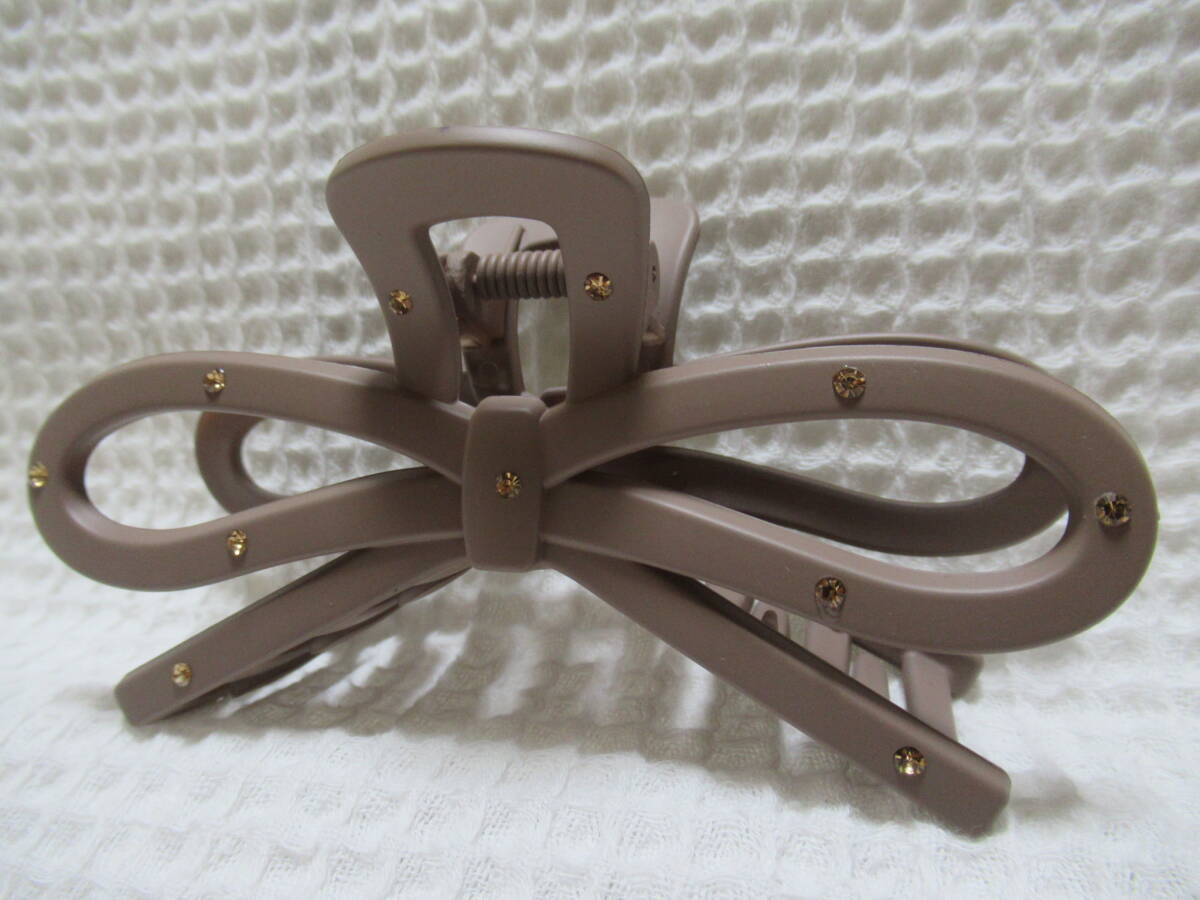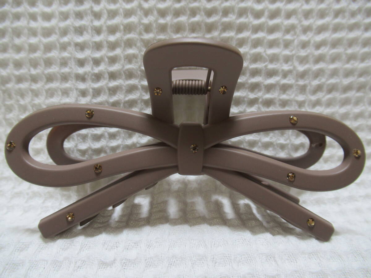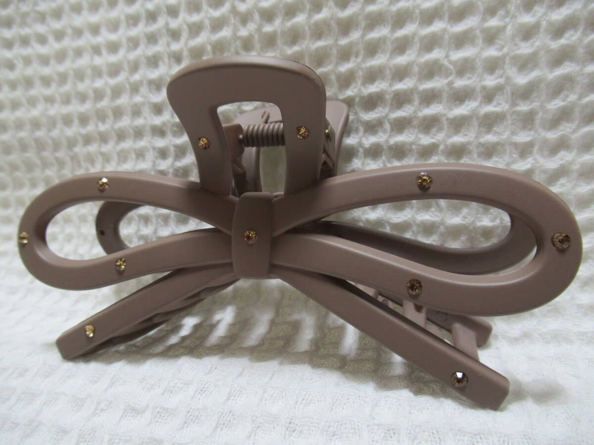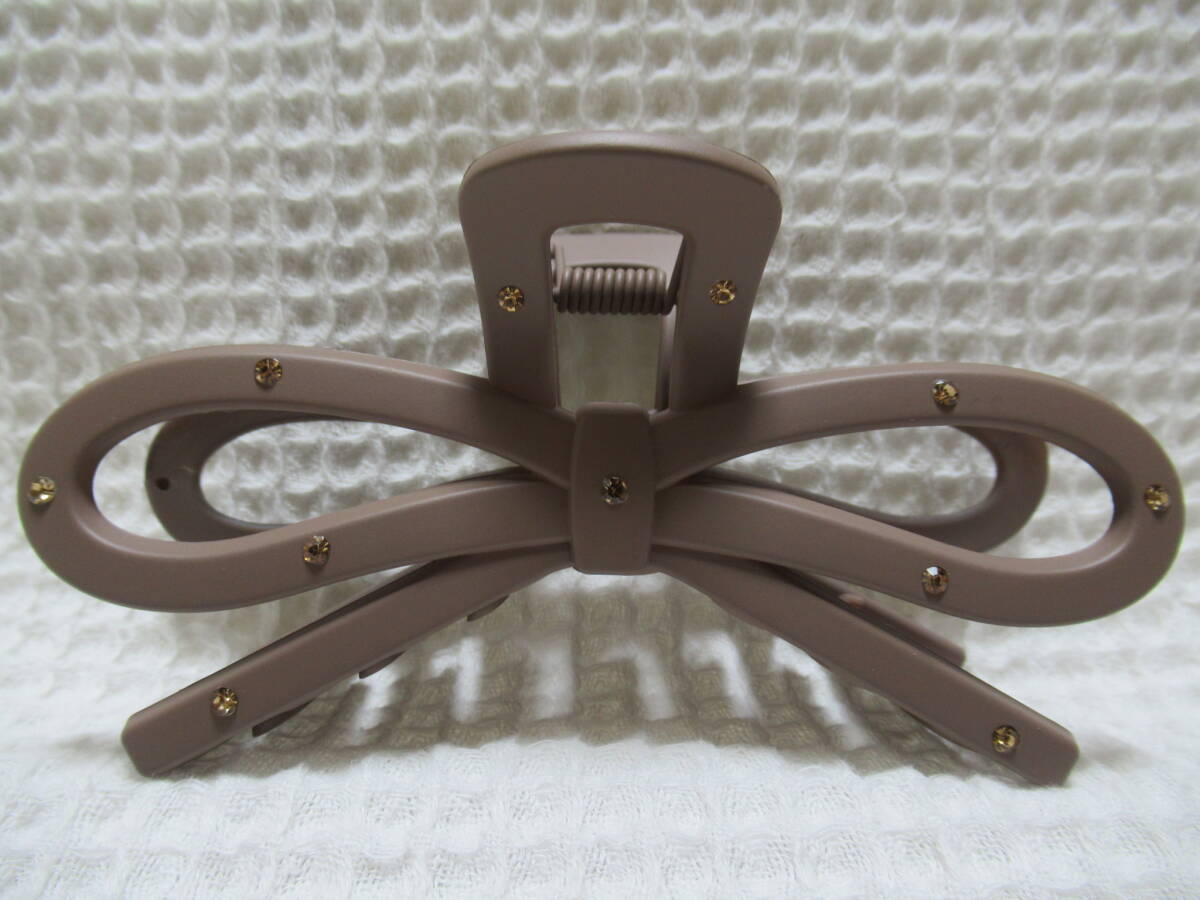 ラインストーン付き 樹脂製リボン型バンスクリップ ライトブラウン系