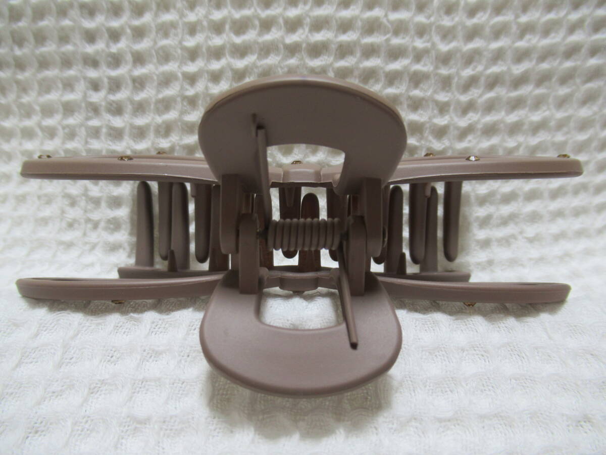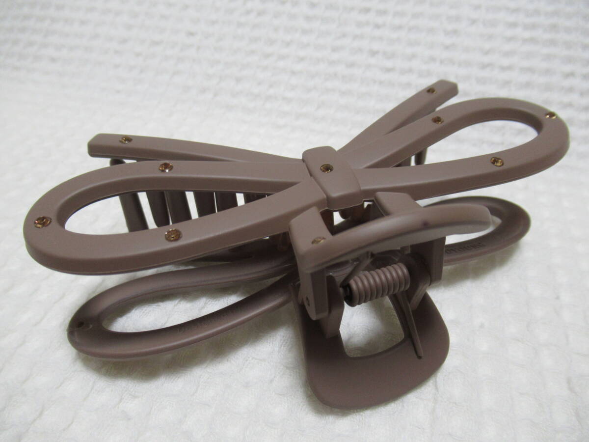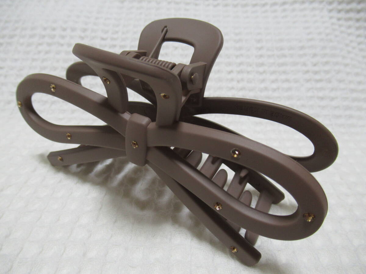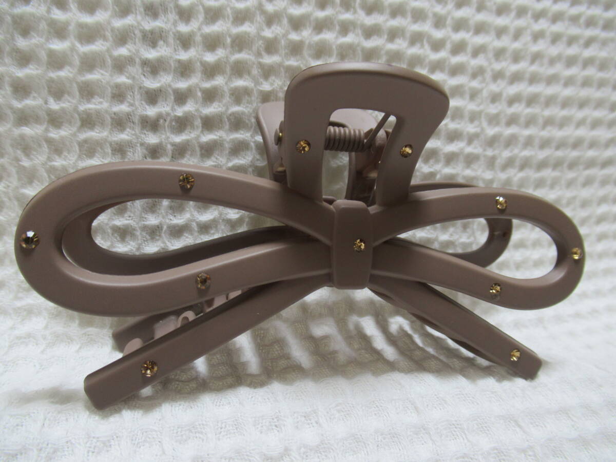 ラインストーン付き 樹脂製リボン型バンスクリップ ライトブラウン系