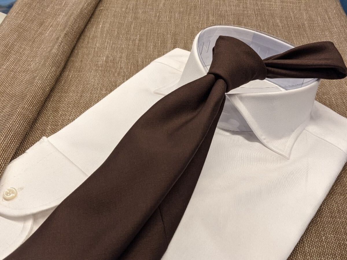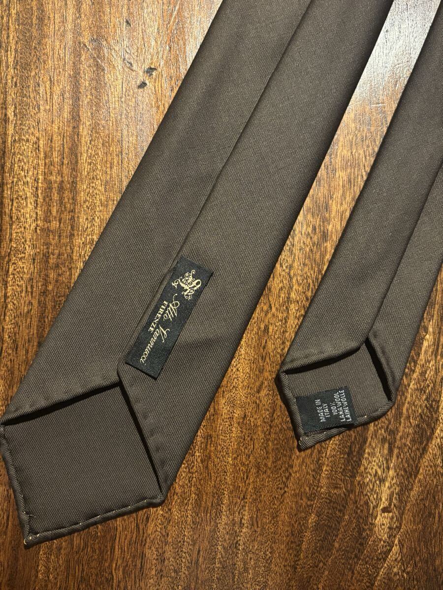 AttoVannucciのブラウン無地のセッテピエゲ7つ折りのネクタイになります。スカーフのように柔らかく上品さが魅力のネクタイです。